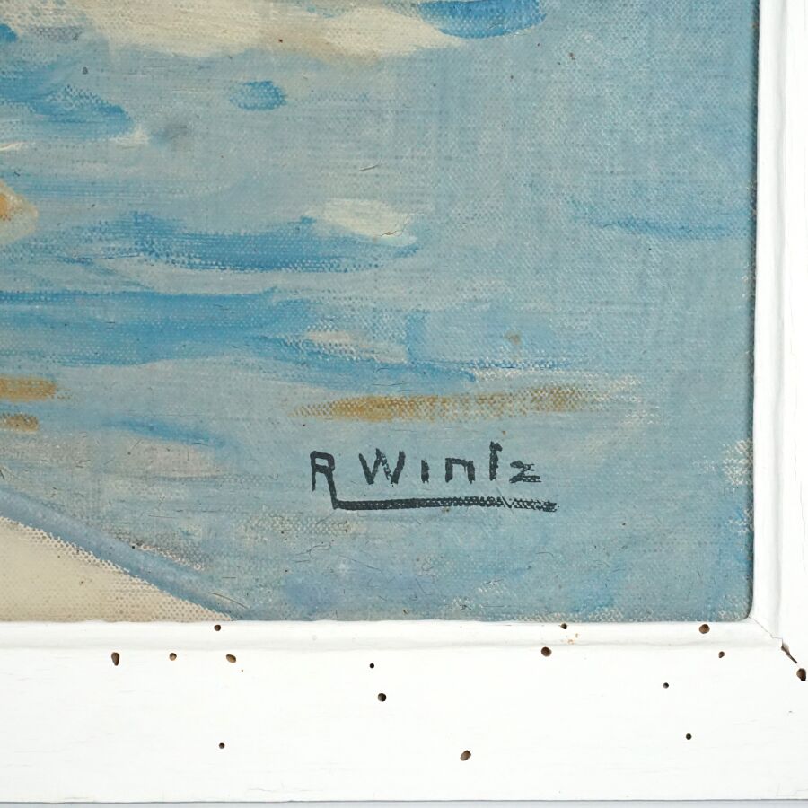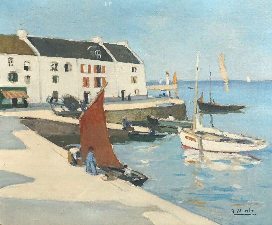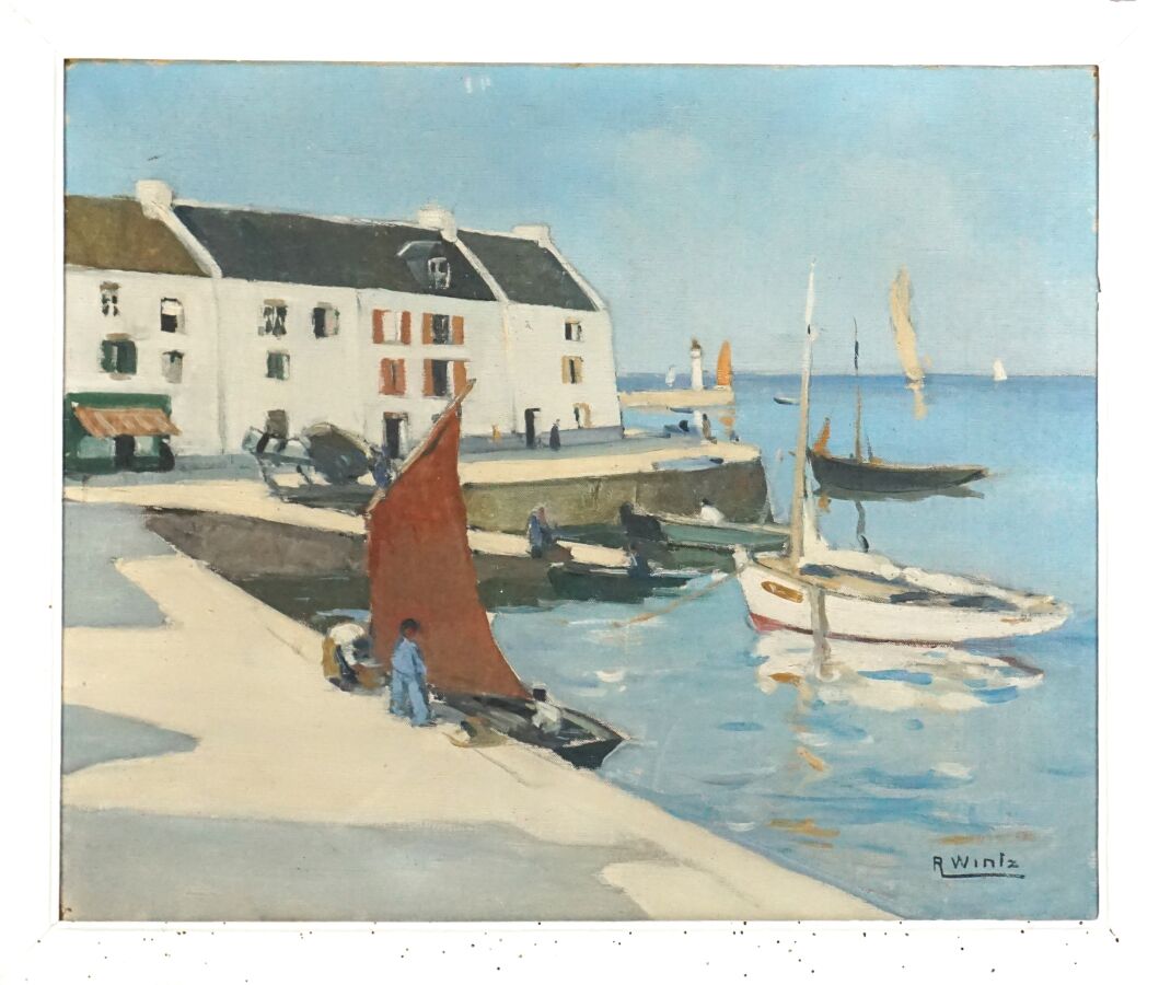 Raymond WINTZ (1884-1956), "Le petit port de Sauzon, Belle-Ile", huile sur toile signée en bas à droite, 54 x 65 cm (leger accroc et enfoncement).