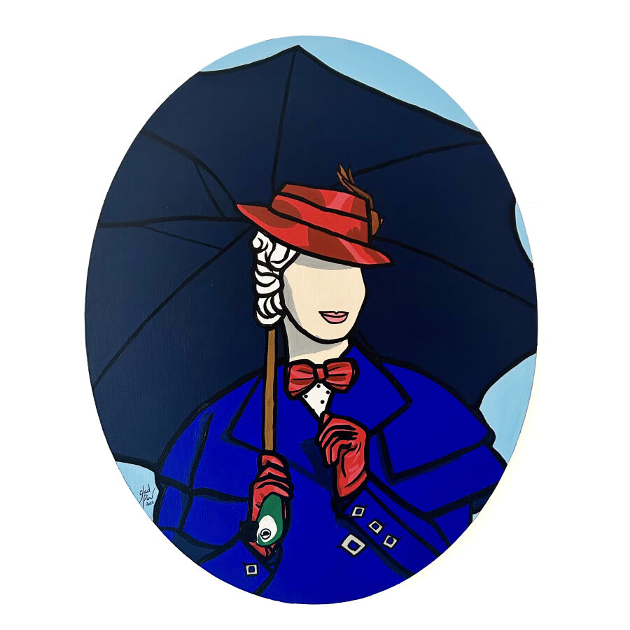REMONTER A PARIS - GLADPOW (1993), "Mary Pop" 2023, peinture acrylique sur toile ovale signée et datée en bas à gauche, 50 x 40 cm.