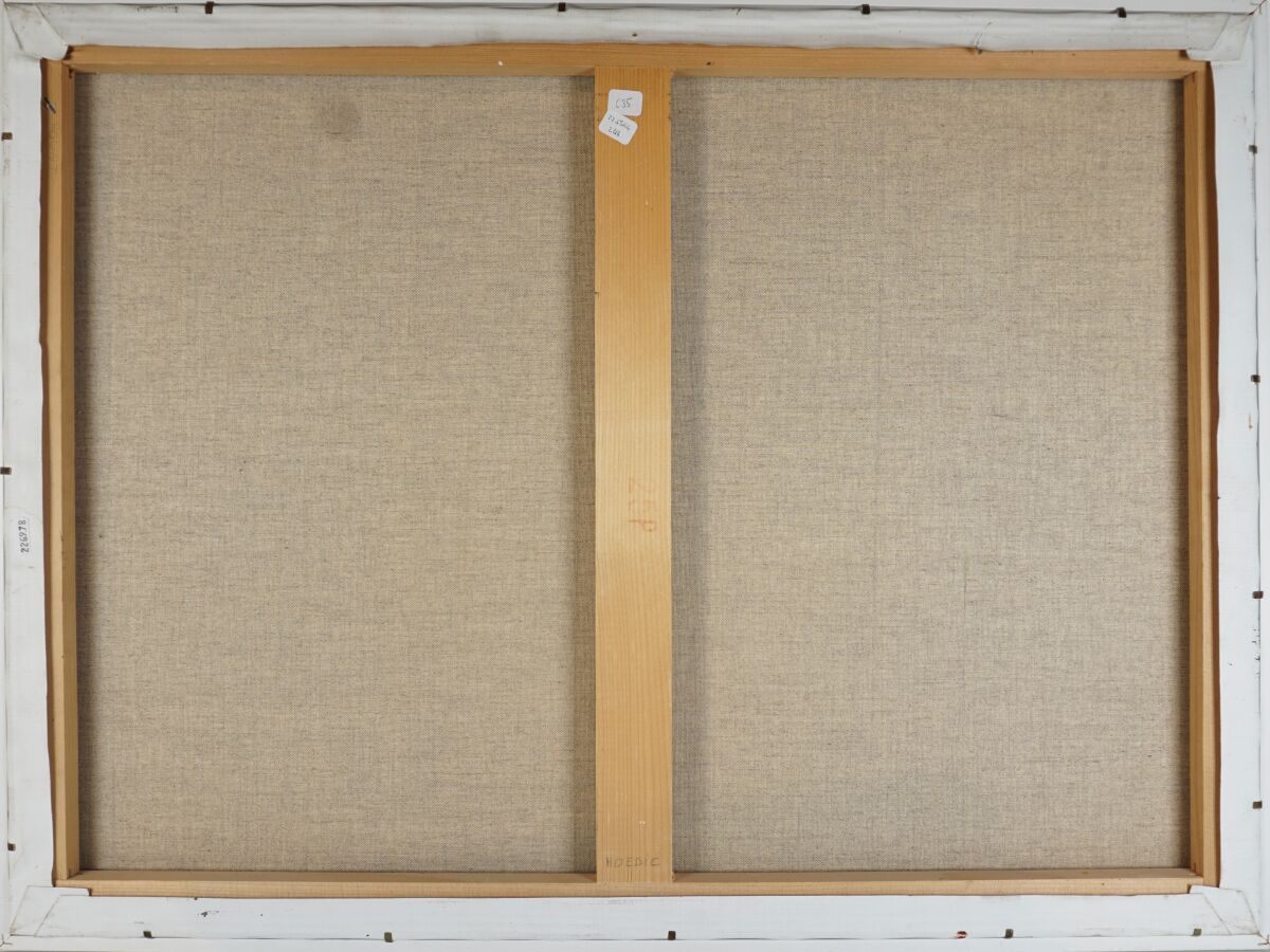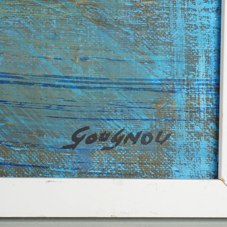 René LE GALL dit GOUGNOU (1940-2014), "Barques sur l'île de Hoëdic", huile sur toile, signée en bas à droite, titrée au dos, 60 x 81 cm.