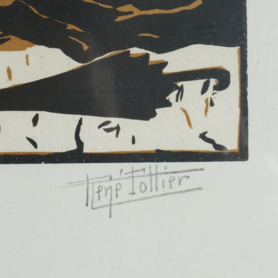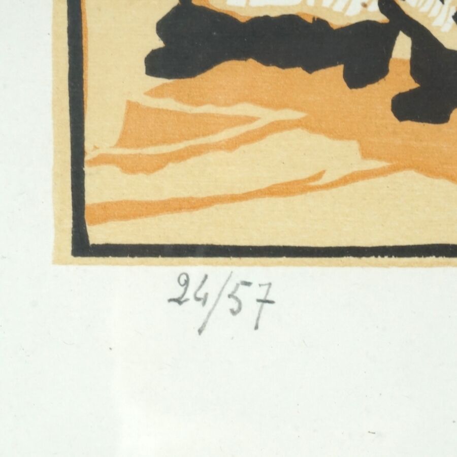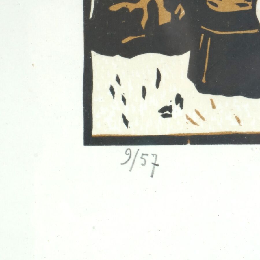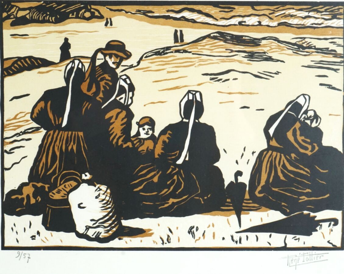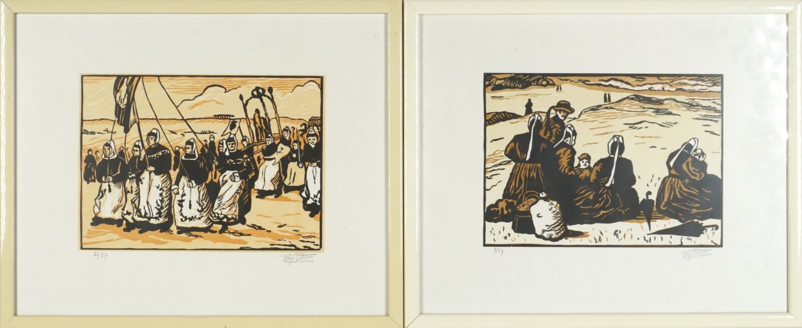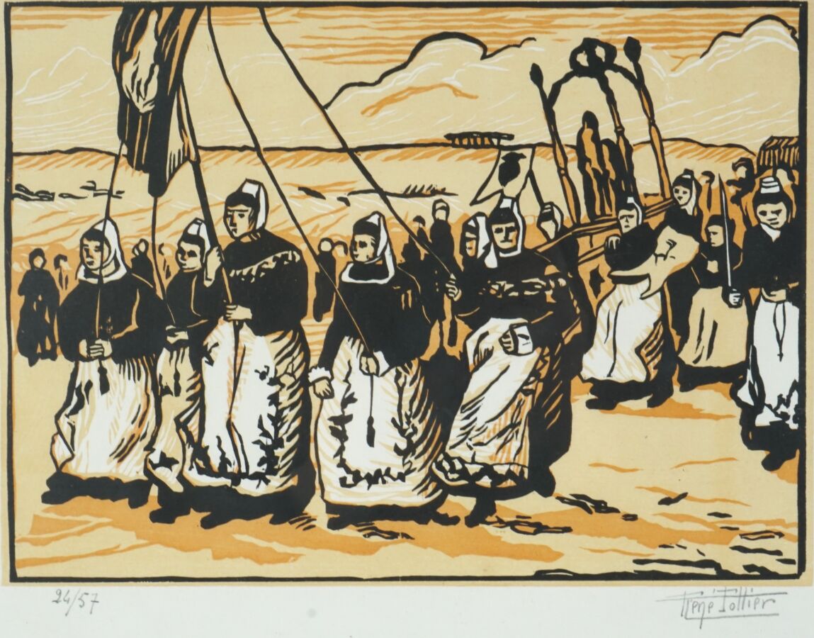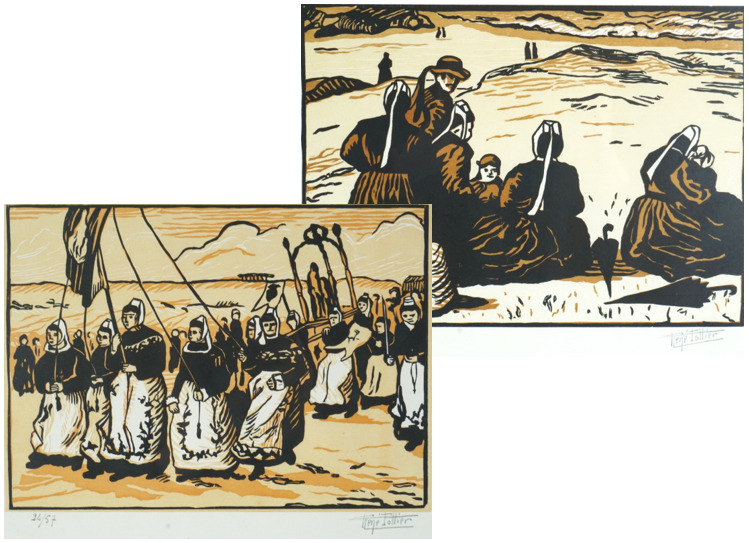 René POTTIER (1897-1968), "La procession" et "Le Pardon", deux linogravures formant un pendant, justifiées 24/57 et 9/57 en bas à gauche dans la marge, signées au crayon en bas à droite dans la marge, Dim. 17.5 x 23.5 cm (à vue).
