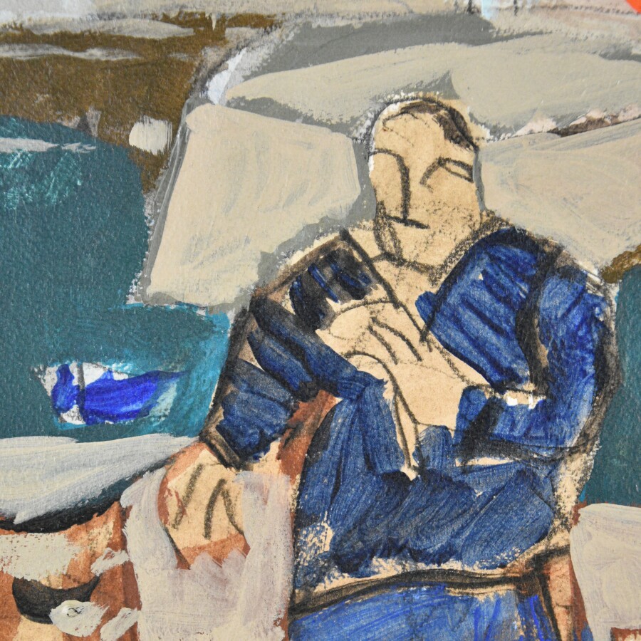 René QUÉRÉ (1932), "Douarnenez, la cale de Rosmeur", gouache sur papier marouflé sur carton, signée en bas à droite, 37.5 x 46 cm (on joint un petit fascicule).