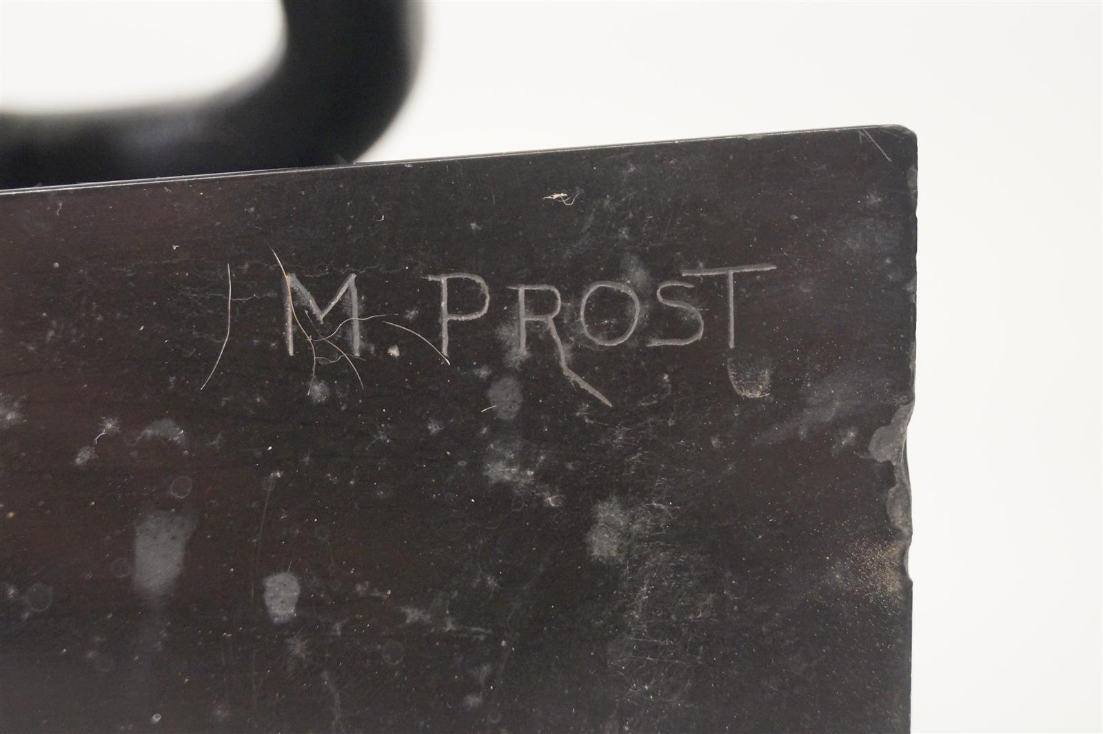 REPREND Maurice PROST (1894-1967), "Panthère marchant", bronze patine noire, fondeur Susse Frères éditeurs Paris, socle en marbre noir, signé sur le socle, 61.3 x 9.8 x H. 29 cm (Oxydations, quelques petits éclats et rayures au marbre)