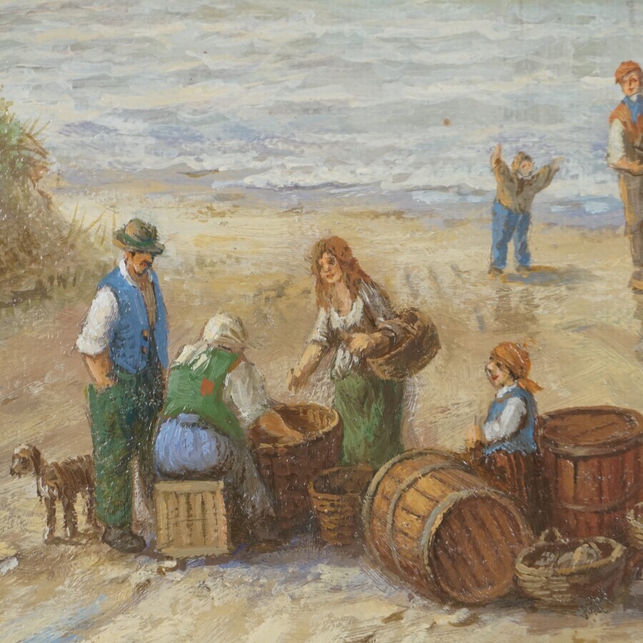 REPRENDRE VIGGOZO (XIXe-XXe), "Plage animée", huile sur toile signée en bas à droite, 50 x 70 cm (sans encadrement).