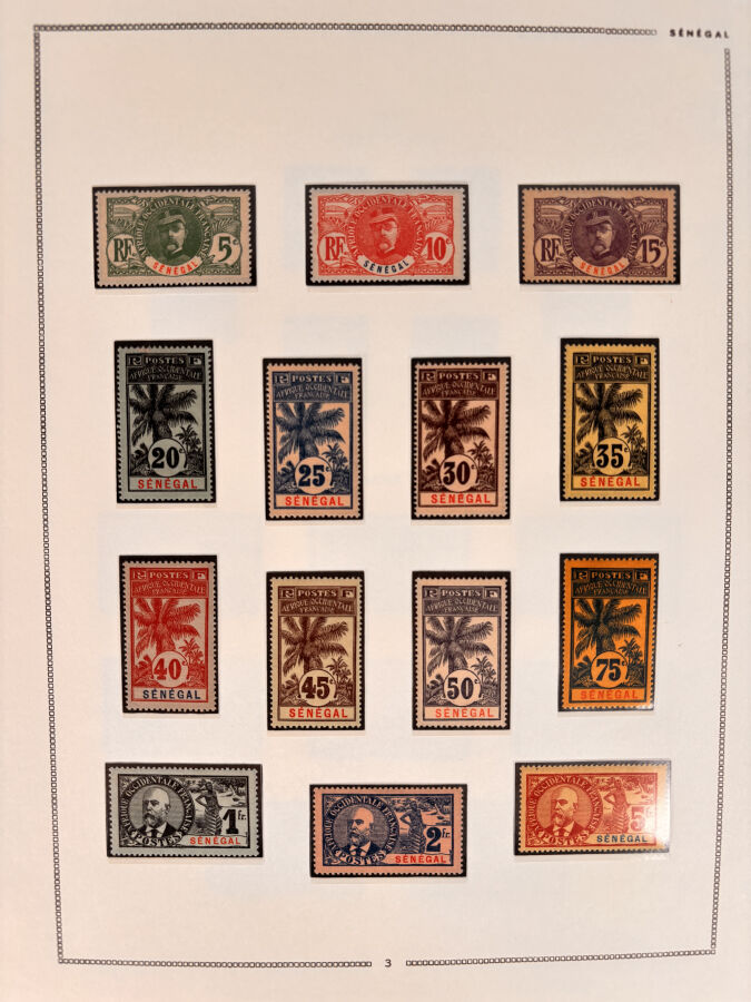 REUNION CFA - SENEGAL - SOUDAN - TCHAD - TOGO: En album MOC avec pochettes, belle collection de TP N** et N*, bonnes valeurs, des facs-similés.