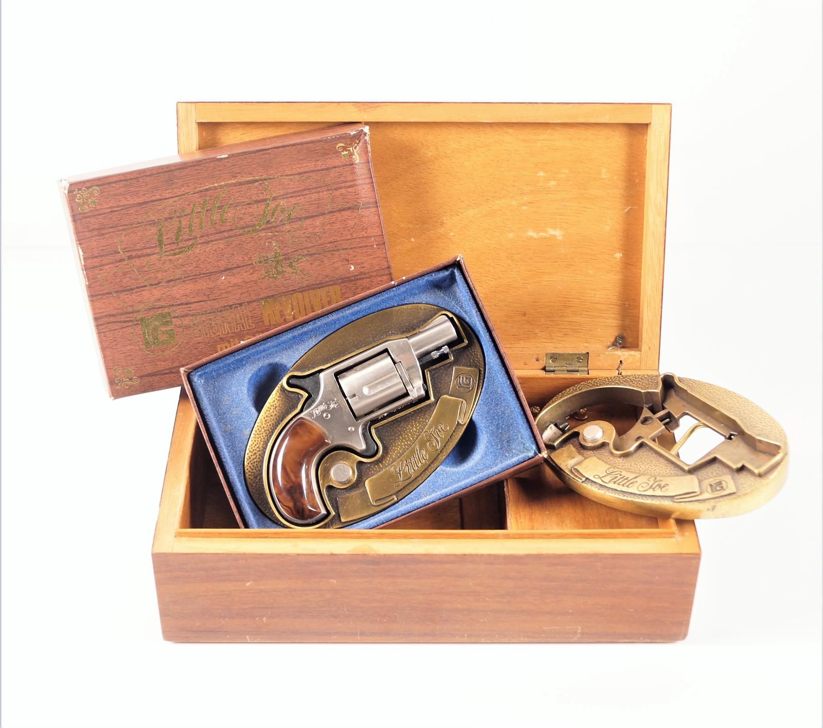 REVOLVER D'ALARME LITTLE JOE de fabrication allemande,longueur : 10,5 cm, boite d'origine et coffret bois, TBE.