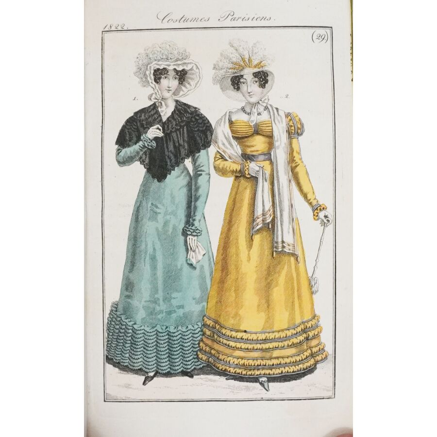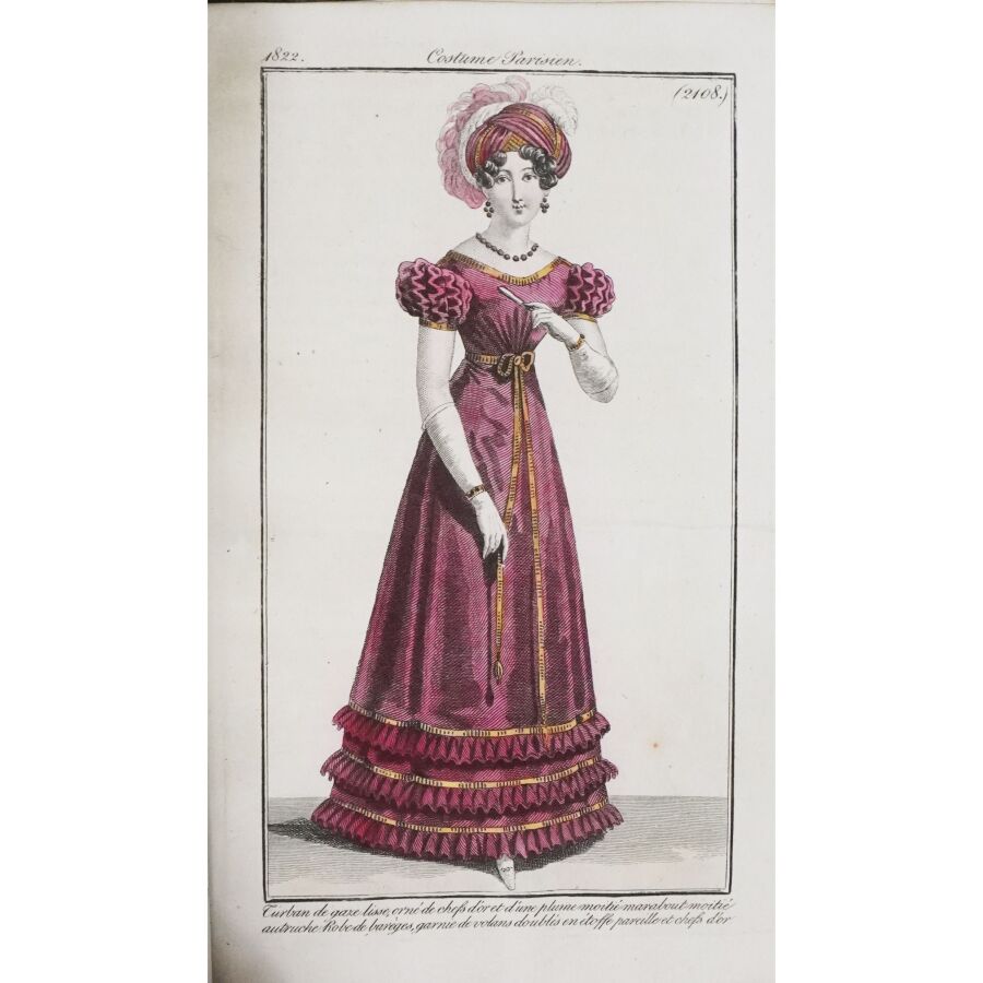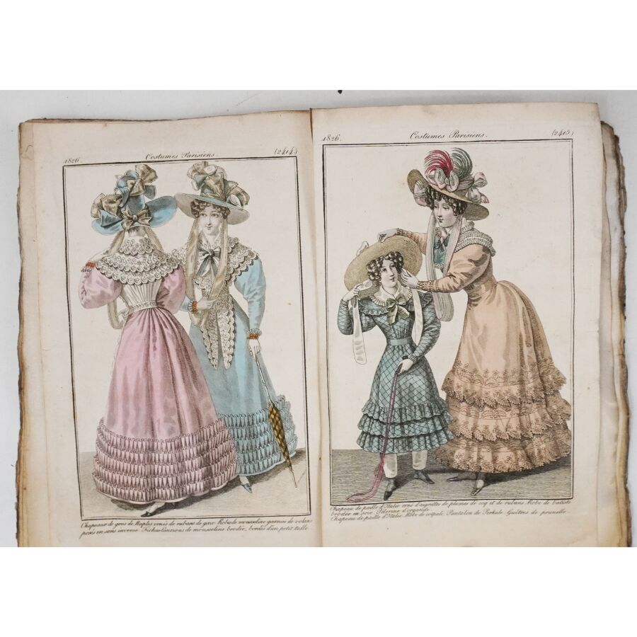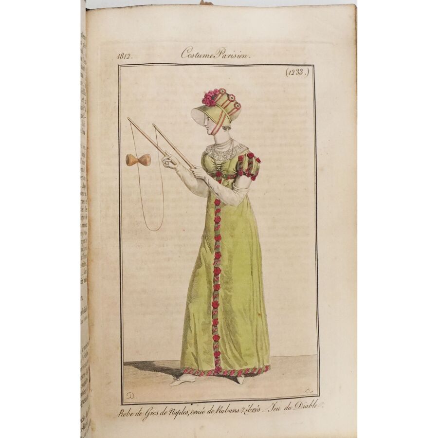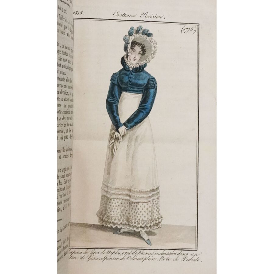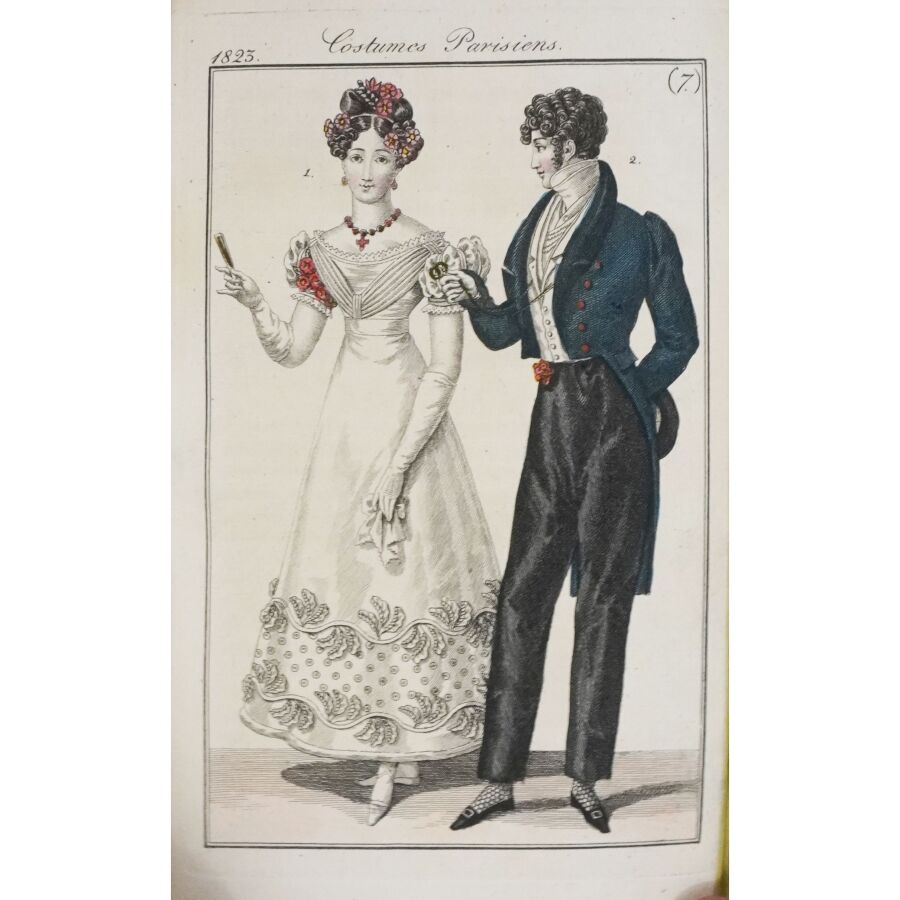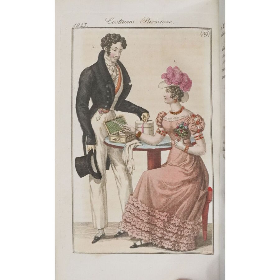 Ensemble comprenant : 1 vol. avec les livraisons du 5 décembre 1811 au 25 septembre 1812, 71 planches en couleurs dont une en double ; 1 vol. avec les livraisons du 5 octobre 1818 au 31 janvier 1819, 28 pl. coul. ; 1 vol. avec les livraisons du 5 septembre au 30 novembre 1819, 20 pl. coul. ; 1 vol. de livraisons datées de 1821, 21 pl. coul. ; 4 vol. datés de 1822 (premier plat du t. 2 manquant), 10 + 11 + 11 + 43 pl. coul. ; 5 vol. datés de 1823, 10 + 12 + 13 + 10 + 41 pl. coul. ; 1 vol. broché de 1826 (dos détaché, déchirures, papier noirci par l'humidité par endroits), 31 pl. coul. ; 1 vol. daté de 1827, 45 pl. coul.