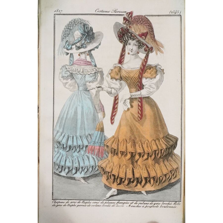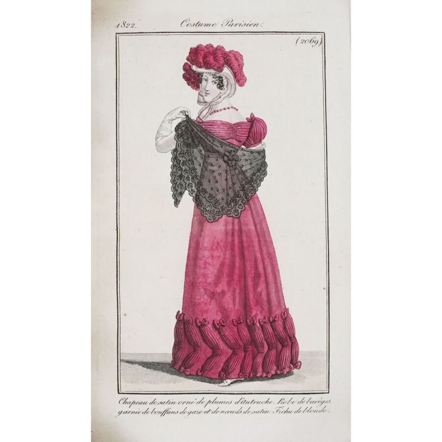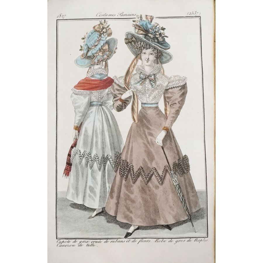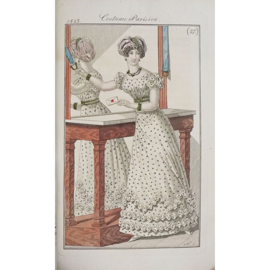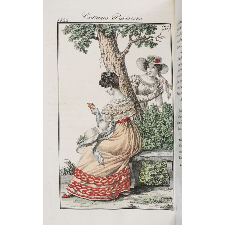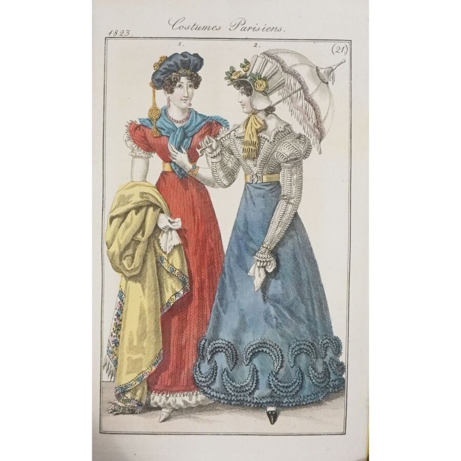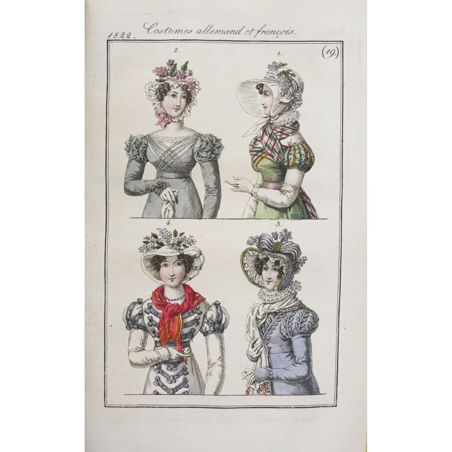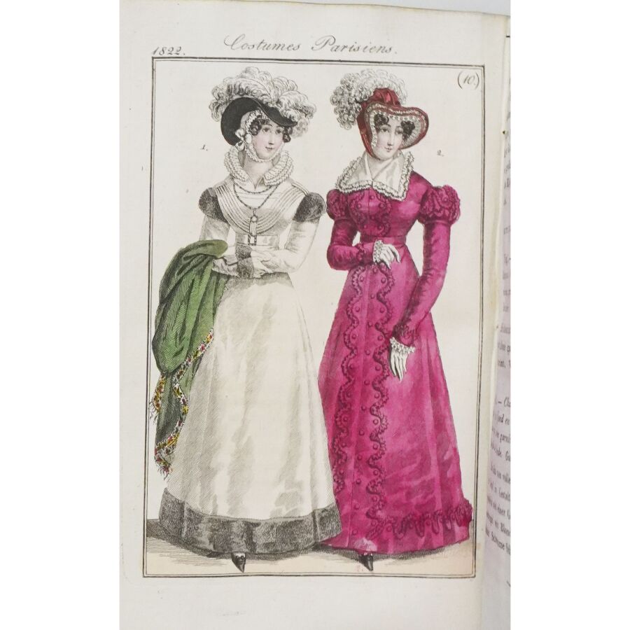 Ensemble comprenant : 1 vol. avec les livraisons du 5 décembre 1811 au 25 septembre 1812, 71 planches en couleurs dont une en double ; 1 vol. avec les livraisons du 5 octobre 1818 au 31 janvier 1819, 28 pl. coul. ; 1 vol. avec les livraisons du 5 septembre au 30 novembre 1819, 20 pl. coul. ; 1 vol. de livraisons datées de 1821, 21 pl. coul. ; 4 vol. datés de 1822 (premier plat du t. 2 manquant), 10 + 11 + 11 + 43 pl. coul. ; 5 vol. datés de 1823, 10 + 12 + 13 + 10 + 41 pl. coul. ; 1 vol. broché de 1826 (dos détaché, déchirures, papier noirci par l'humidité par endroits), 31 pl. coul. ; 1 vol. daté de 1827, 45 pl. coul.
