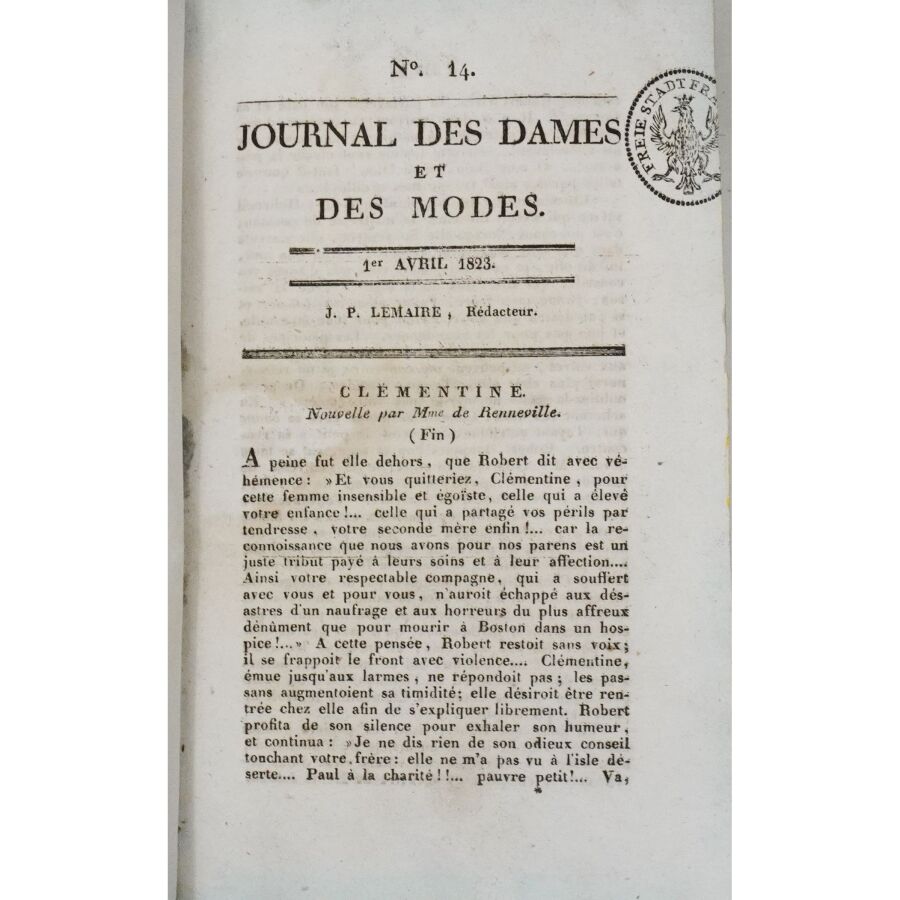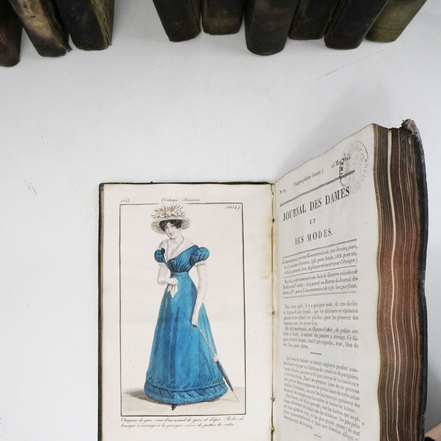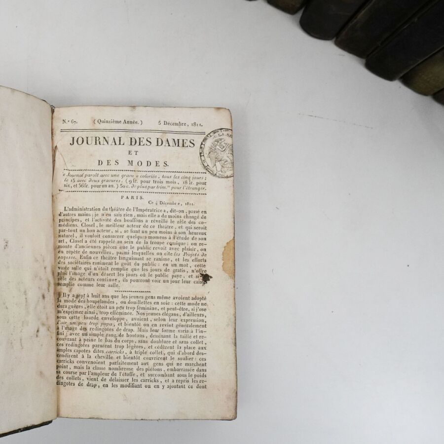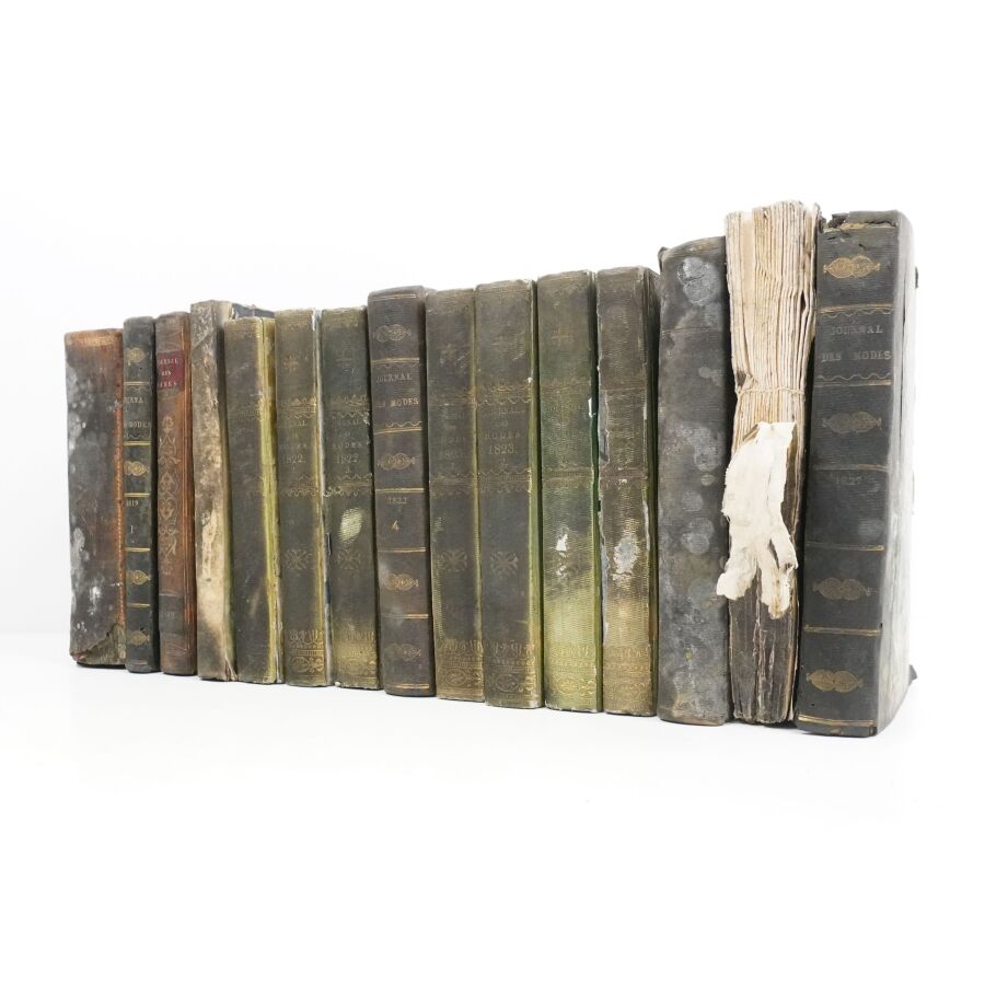 [Revue]. Journal des Dames et des Modes. Paris, s. n., 1811-1827. 15 vol. in-8, dont 14 vol. en reliures de l'époque en mauvais état et 1 vol. broché en très mauvais état.