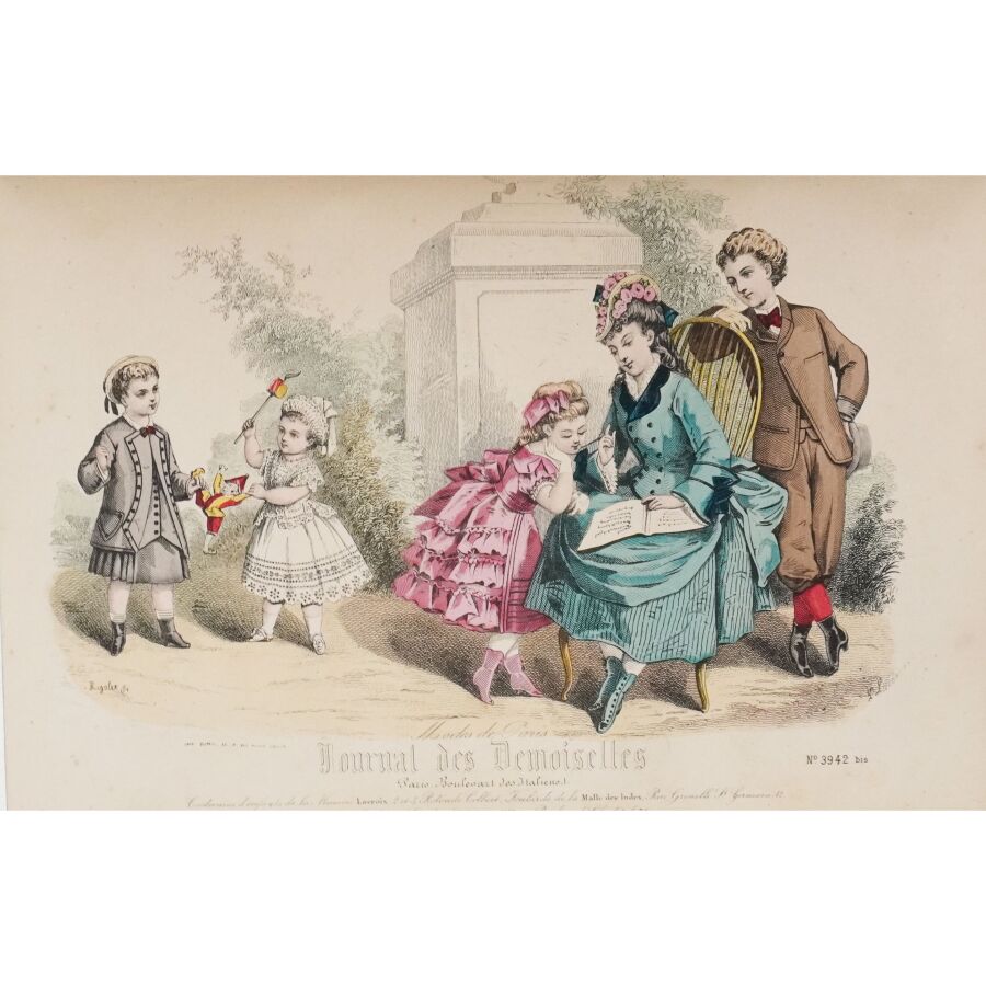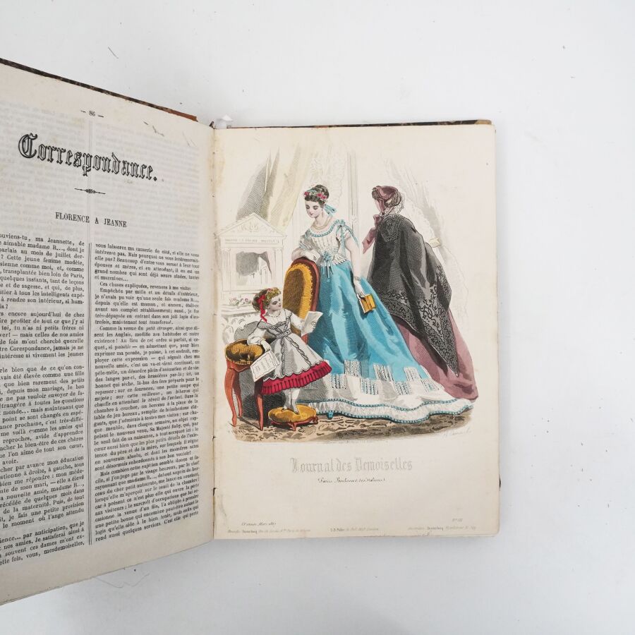 On y joint : MAGASIN DES DEMOISELLES, tome vingt-deuxième. Paris, 1865-1866. 1 vol. in-8, reliure de l'époque. 14 pl. couleurs. Vol. affecté par l'humidité, reliure abîmée, nombreuses pl. brunies.