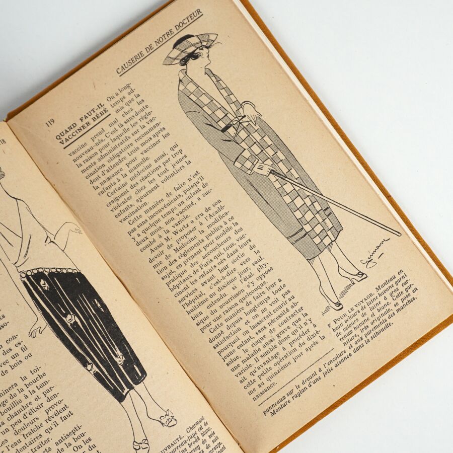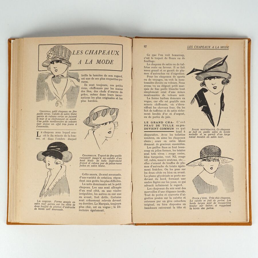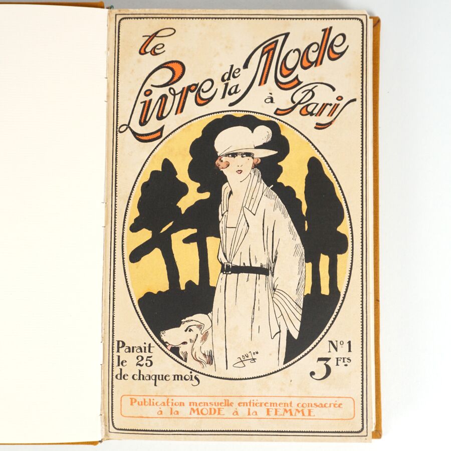 [Revue]. Le Livre de la Mode à Paris. (Publication mensuelle entièrement consacrée à la Mode à la Femme.) N°1. Paris, sn, sd [1919]. In-8 bradel toile ocre illustrée au premier plat de la composition de couverture reprise en couleurs, p. de titre en mar. noir au dos, couv. et dos conservés.
