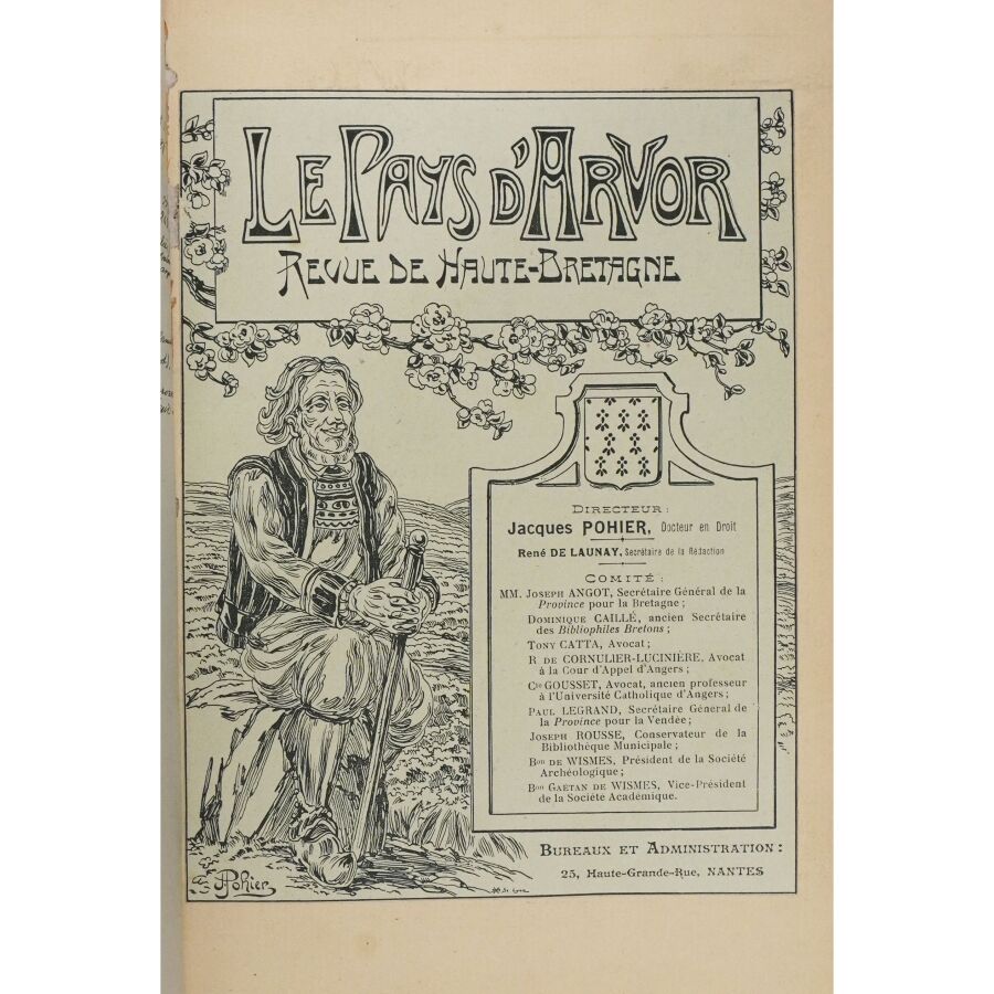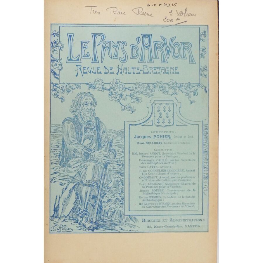 Revue. Le Pays d'Arvor. Revue de Haute-Bretagne. Nantes, Jacques Pohier, René Delaunay, Juin 1906-Juin 1908. 24 numéros (2 années) reliées en 2 volumes grand in-8 demi-basane brune, dos lisses, couv. illustrée conservée (reliure de l'époque). Nombreuses illustrations dans le texte.