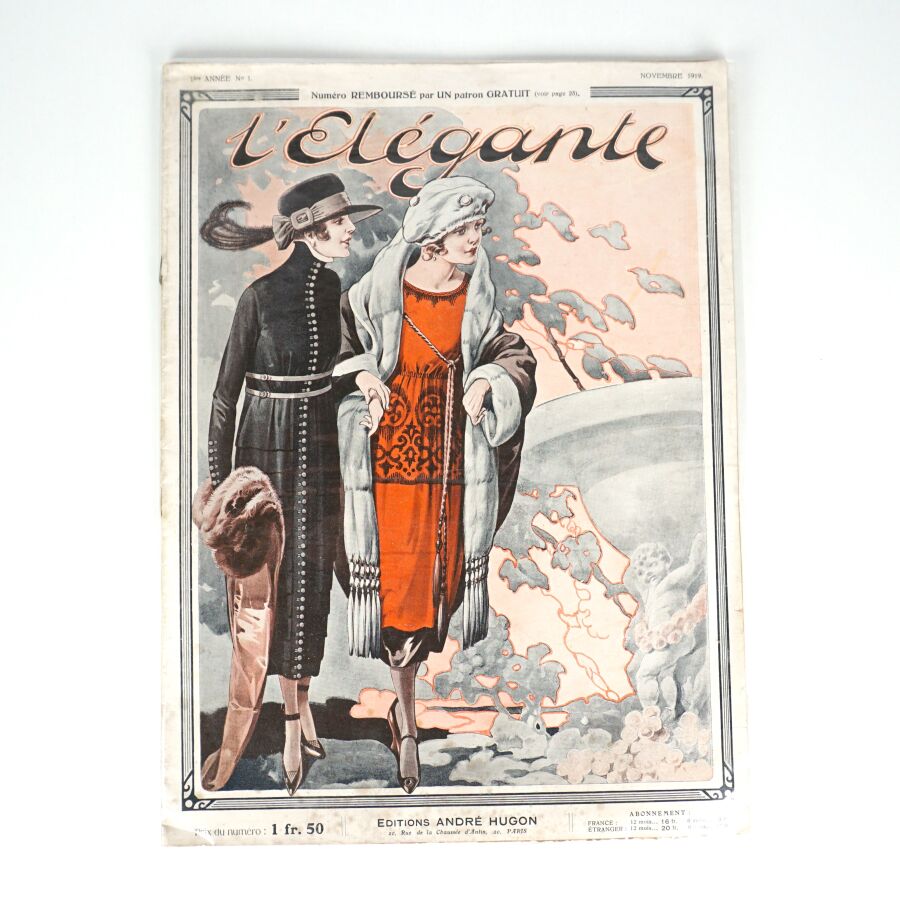 - L'Elégante. 1ère année n°1. Novembre 1919. Paris, André [1919]. In-folio couv. illustrée en deux tons. Numéro de tête de cette rare revue.