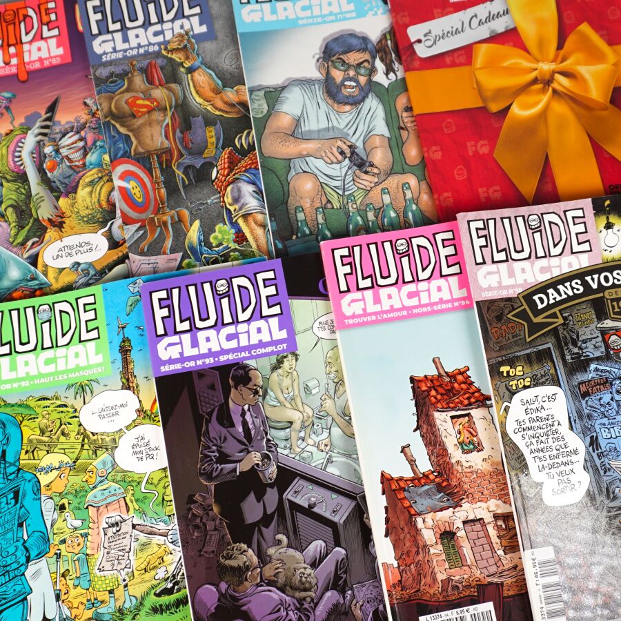 Revues FLUIDE GLACIAL, éd. AUDIE : Ensemble de 8 magazines comprenant les or-séries numéro 85, 86, 88 à 90, 92 à 94. Bon état.