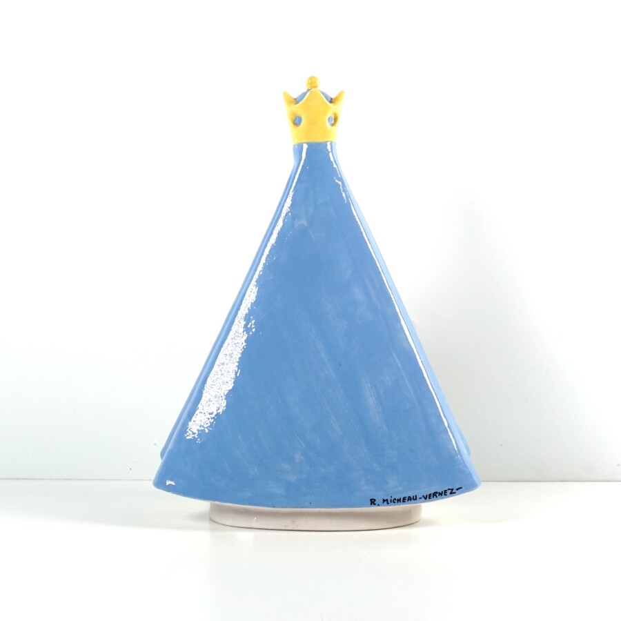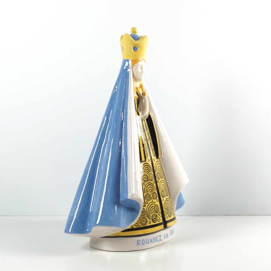 Robert MICHEAU-VERNEZ (1907-1989) - HENRIOT : "Rouanez An Arvor" circa 1950, sujet en faïence émaillée polychrome, titrée en façade sur la base, signé au dos, époque Ar Seiz Breur, H. 33.5 cm (socle en bois à l'intérieur).