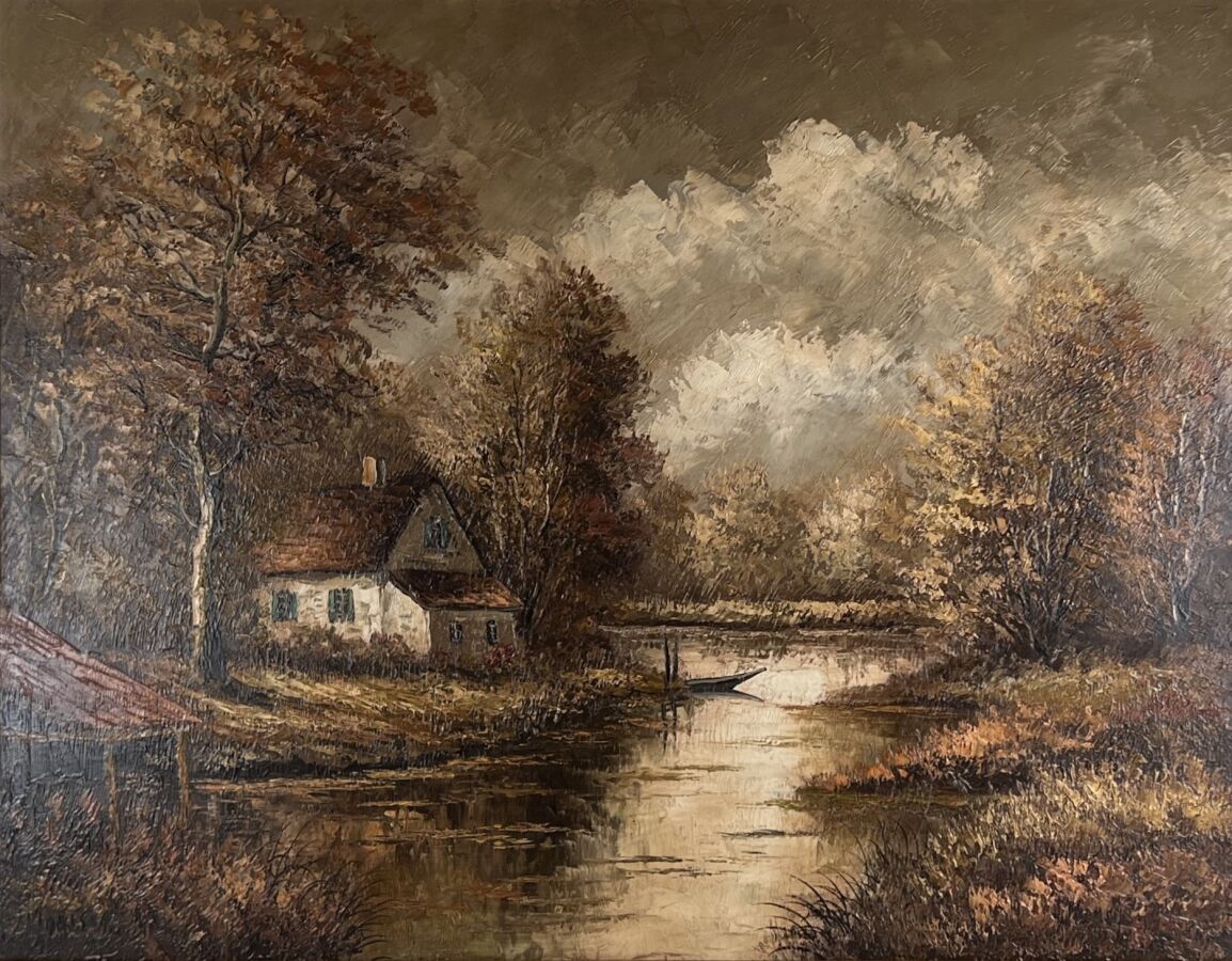 Robert MOGISSE (1933), "Campagne", huile sur toile signée en bas à gauche, 73 x 92 cm.