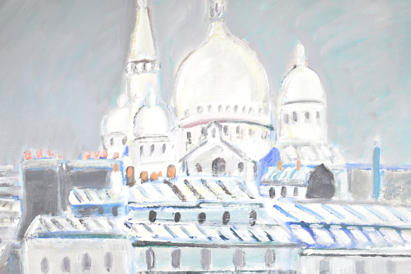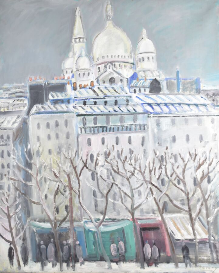 Robert SAVARY (1920-2000), « Le Sacré-Coeur sous la neige », huile sur toile, signée en bas à droite et titrée au dos par l'artiste, 99 x 81 cm.