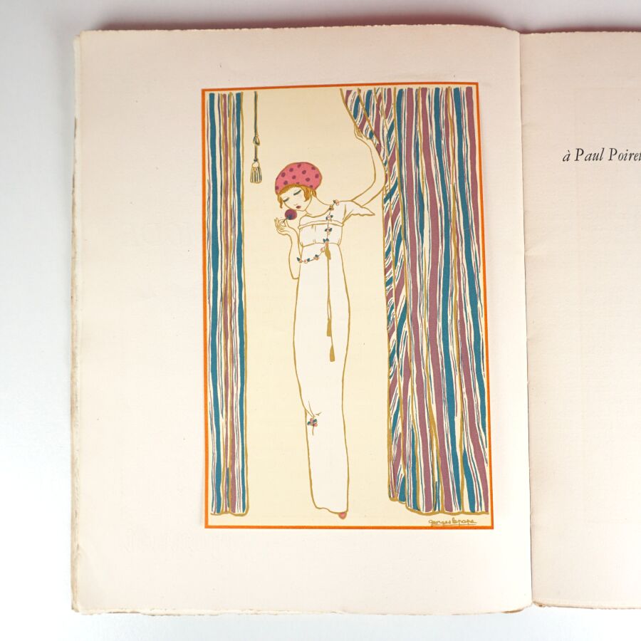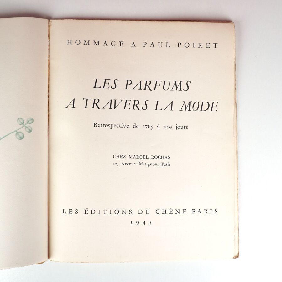 [ROCHAS (Marcel)]. Hommage à Paul POIRET. Les Parfums à travers la mode, rétrospective de 1765 à nos jours. Paris, Éditions du Chêne, 1945. In-folio de [16] ff. broché, couverture décorée de guirlandes florales, étiquette de titre au plat sup. (couverture