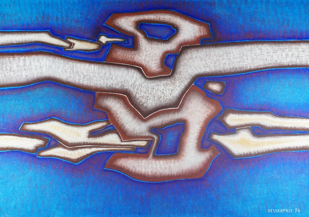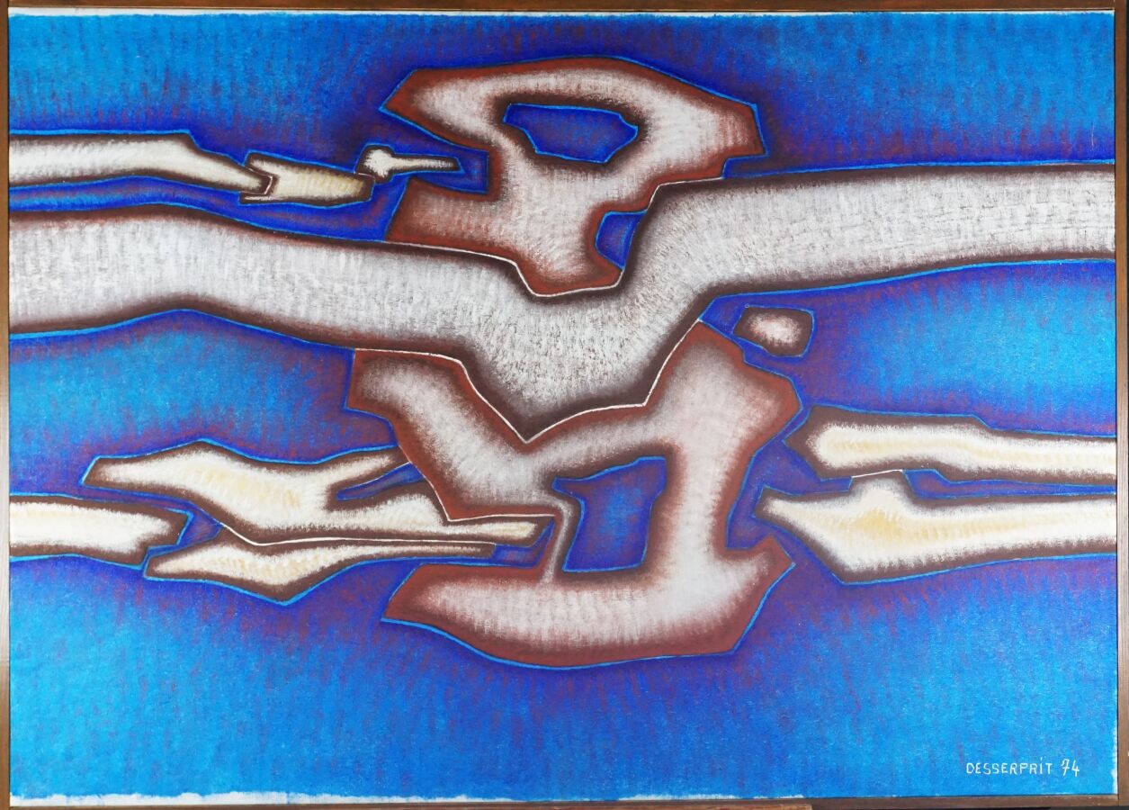Roger DESSERPRIT (1923-1985), "Figure abstraite bleue" 74, huile sur toile signée et datée en bas à droite, 130 x 93 cm.