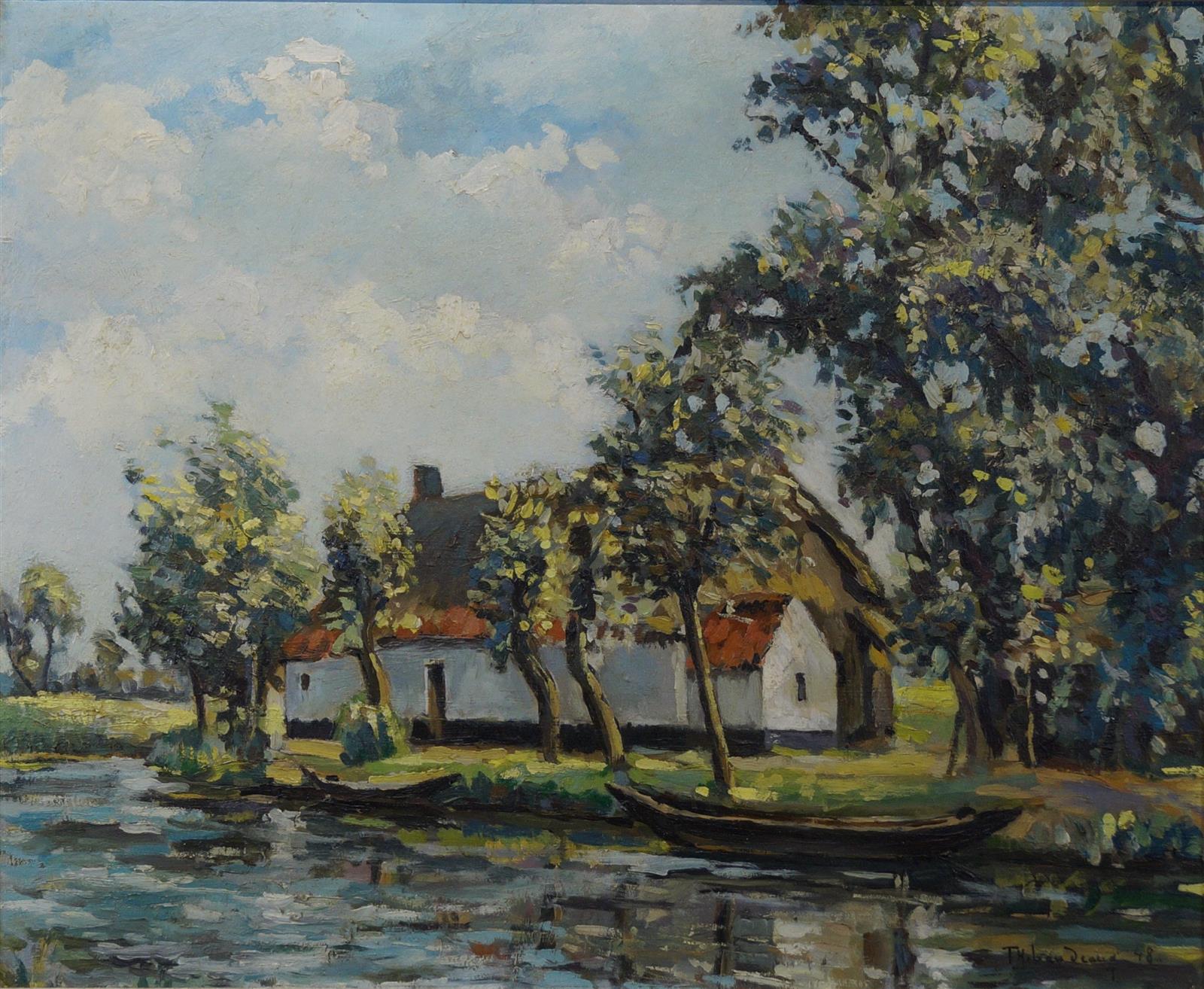 Roger THIBAUDEAU (1920), "Les Saules, marais de Tilques" juillet 1948, huile sur isorel, signée et datée en bas à droite, située et contresignée au dos, 37 x 45 cm.