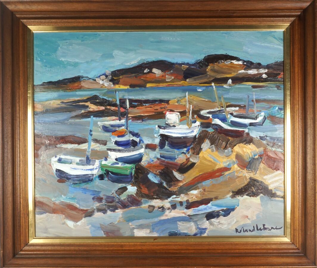 Roland LEFRANC (1931-2000), "Locquémeau", huile sur toile signée en bas à droite, contresignée et située au dos, 60 x 73 cm.
