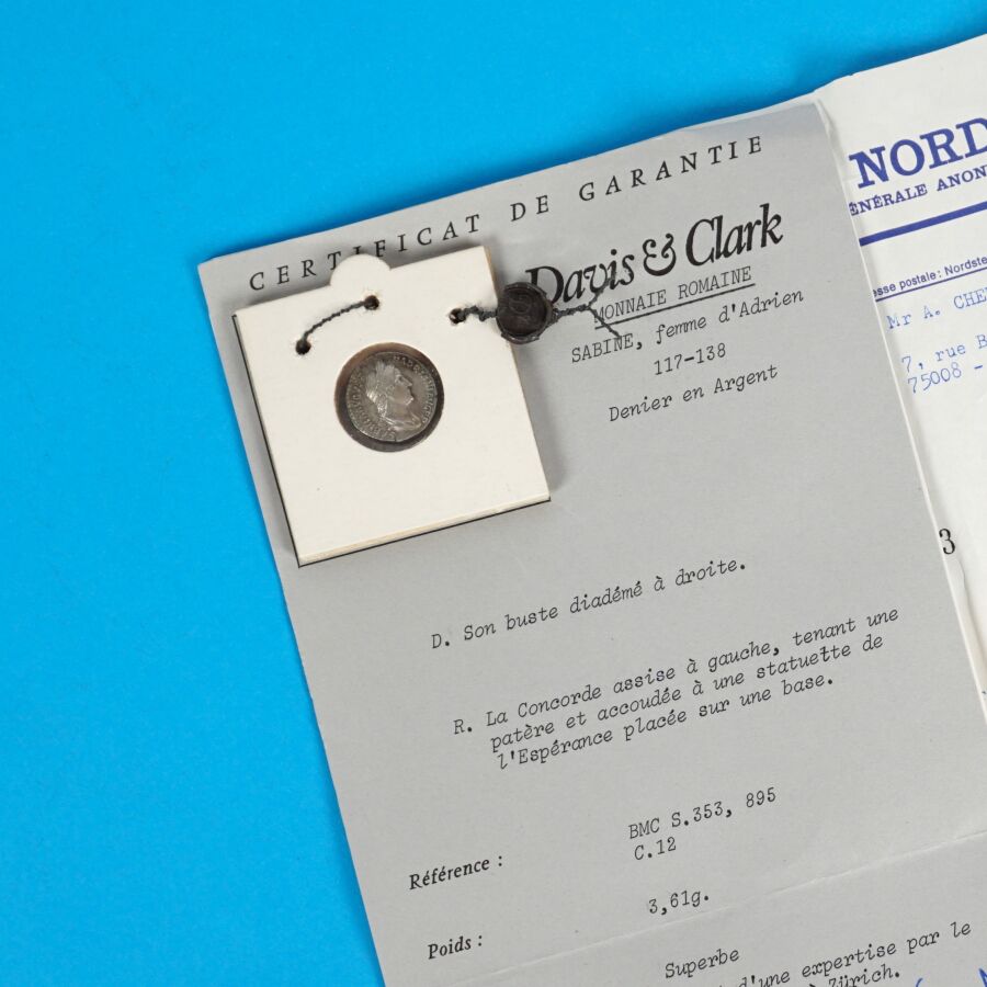ROMAINE : Sabine 117-138, Denier Argent : R/ La Concorde, Poids brut :3,61 g environ. SUP. RCV 3919.