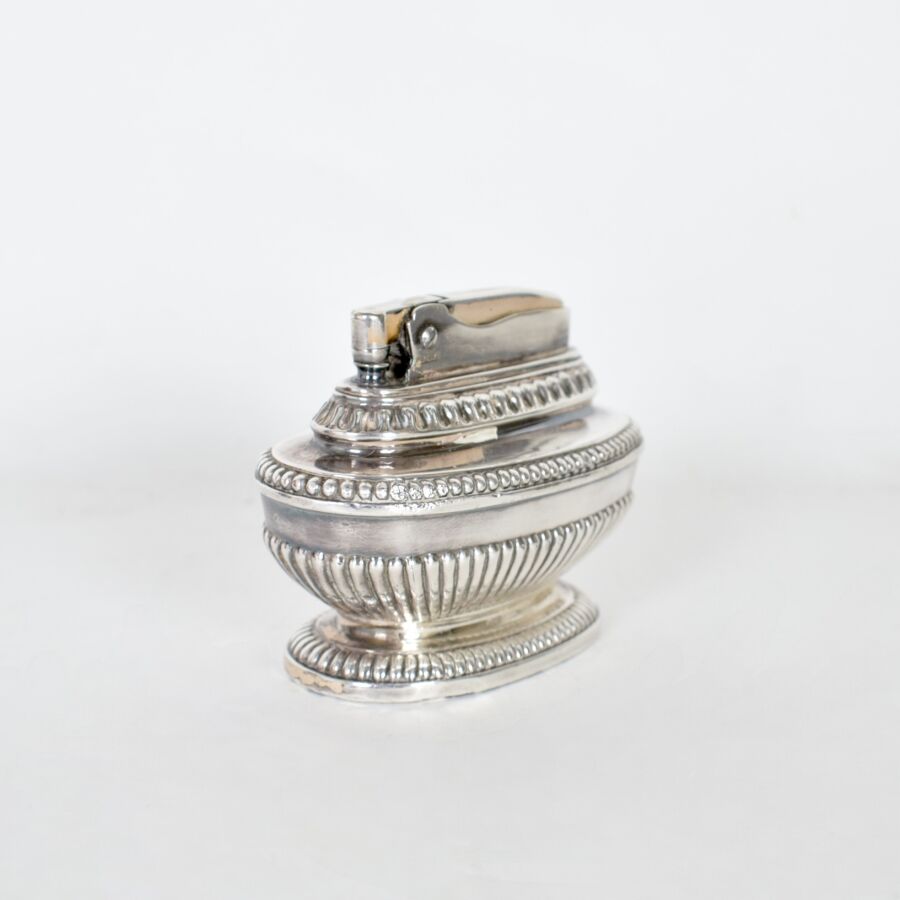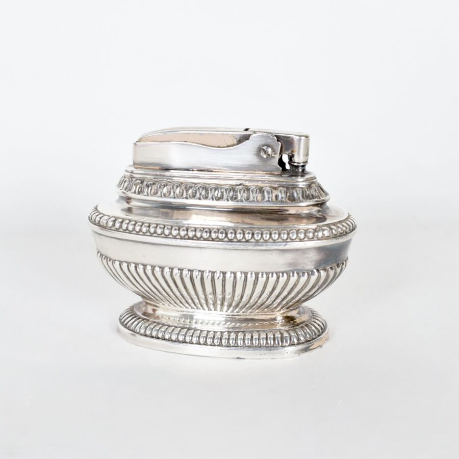 RONSON "QUEEN ANNE" : Briquet de table en métal, à décor godronné, H. 6.7 cm - L. 9.3 cm