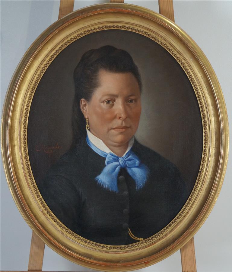 ROUAULT (XIXe), "Portrait de femme" 1878, huile sur toile ovale, signée et datée au milieu à gauche, 56 x 46.5 cm.