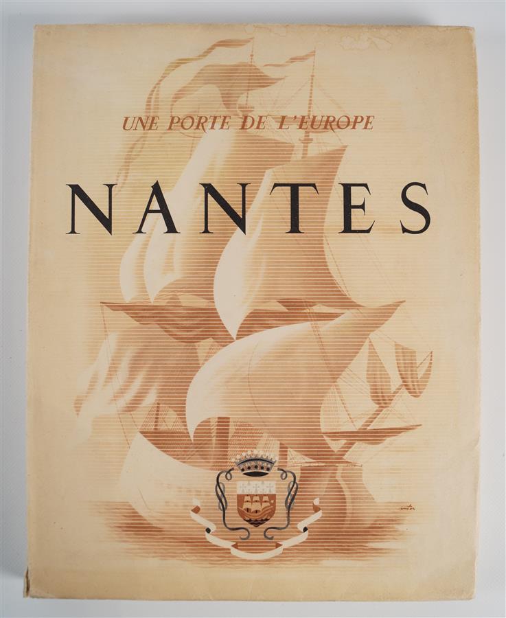ROY (Bernard) - Une porte de l'Europe Nantes - Nantes ; Rotary-Club, imprimerie Beuchet & Vanden Brugge, 1951 - 1 volume In-4° broché sous couverture rempliée illustrée au 1er plat (1 petite fente de 2 cm au 1er mors) - Bandeaux et culs-de-lampe en couleurs par J. A. Mercier, nombreuses illustrations couleurs in et hors-texte par Mathurin Méheut, J. A. Mercier, Alaux, Brenet, Picart Le Doux, Geo Ham, Lorioux, Bouchaud, - Très bon exemplaire.
