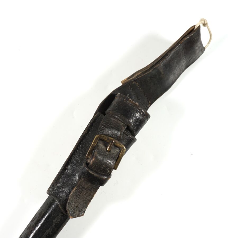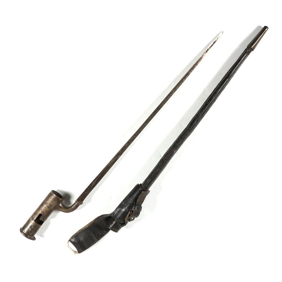 ROYAUME DE GRANDE-BRETAGNE - BAIONNETTE A DOUILLE TYPE BROWN BRESS, douille de 10 cm, longueur totale : 53,5 cm, fourreau et porte-fourreau rapportés en cuir noir, ABE.