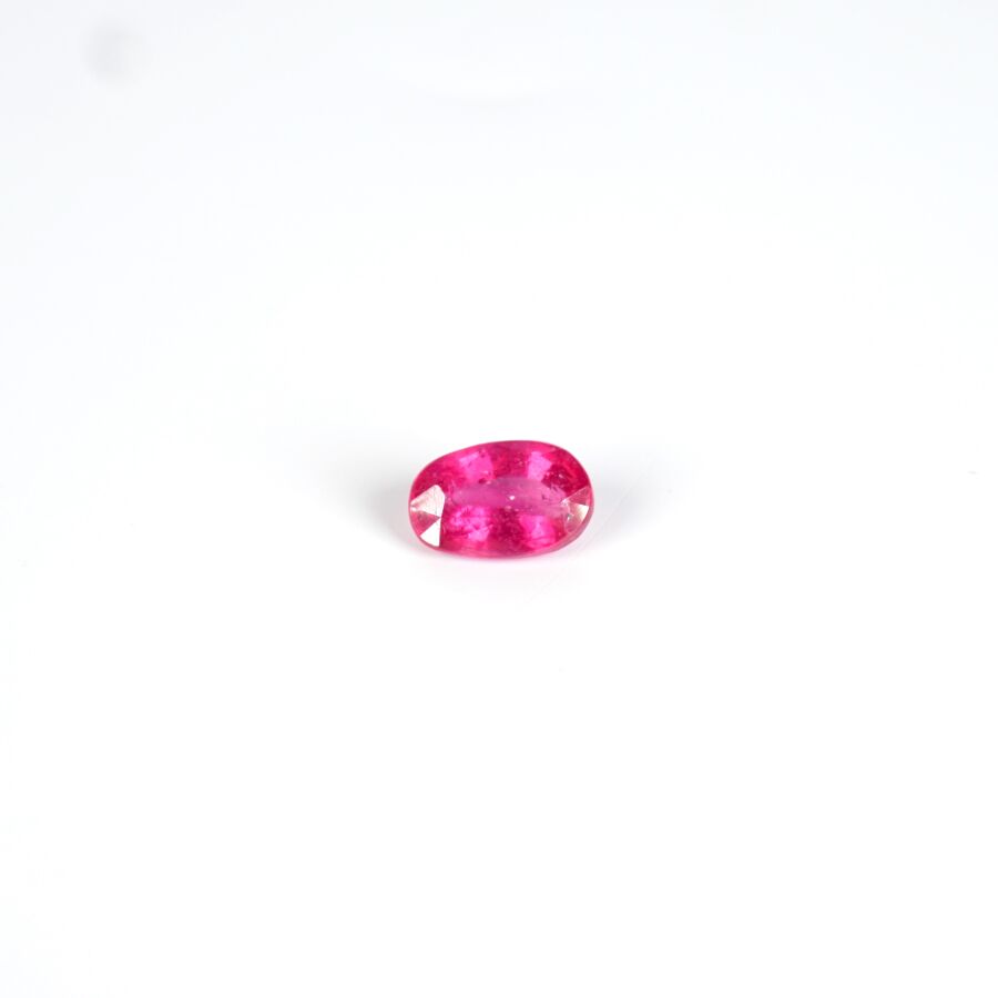 Rubis facetté sur papier, de taille ovale calibrant 3.3 cts environ (D. 1.05 x 0.7 cm), Poids brut : 0.7 g environ (inclusions).