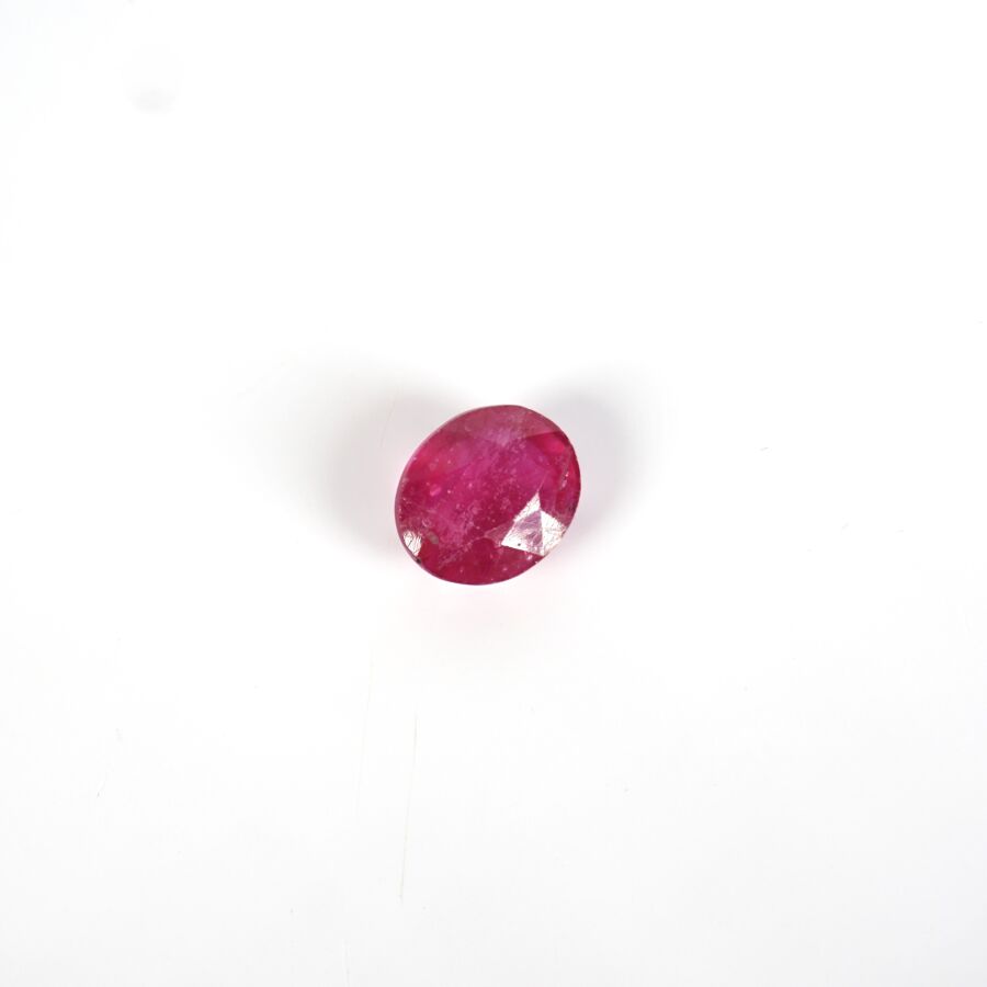 Rubis facetté sur papier, de taille ovale calibrant 9.56 cts environ (D. 1.3 x 1.1 cm), Poids brut : 1.9 g environ (inclusions et égrisures).