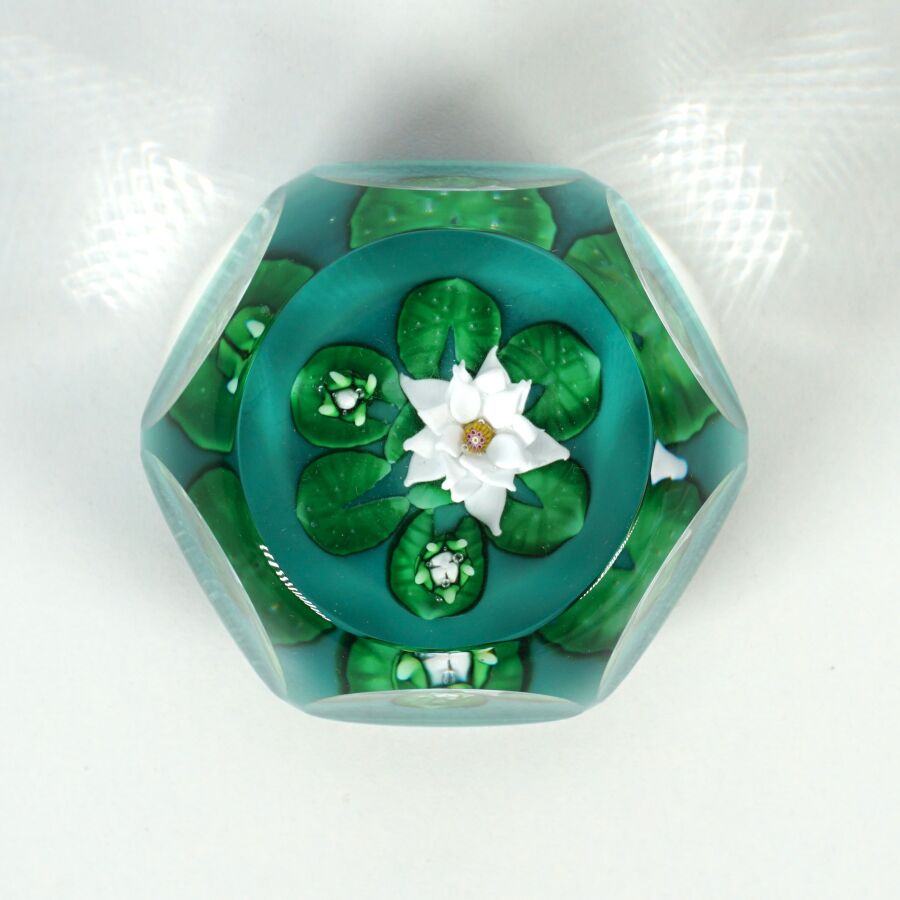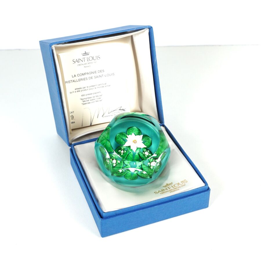 SAINT LOUIS : "Nymphéas de Monet", presse-papier sulfure, édition 1984, présenté avec son certificat d'authenticité et dans sa boîte d'origine.
