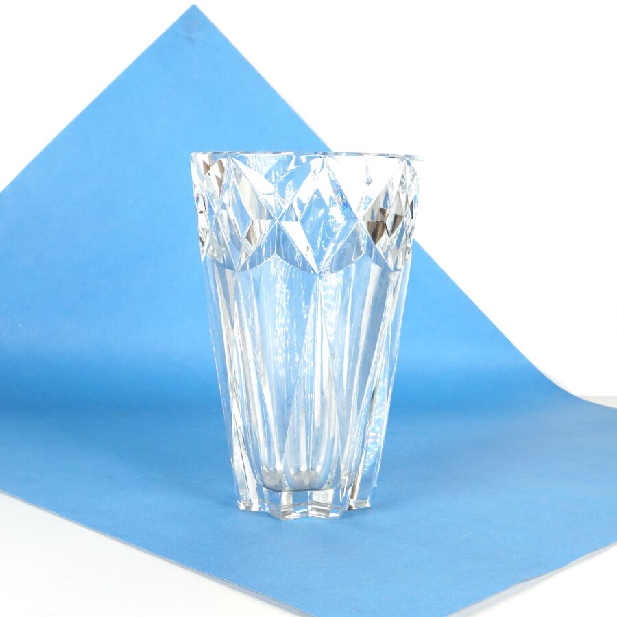 SAINT-LOUIS : Vase en cristal à décor de pointes de diamant, signé du cachet sous la base, H. 20cm.