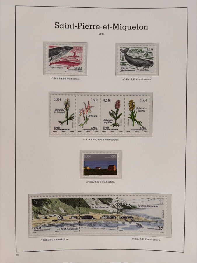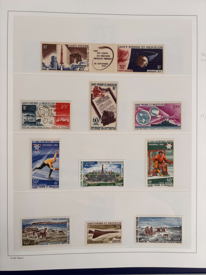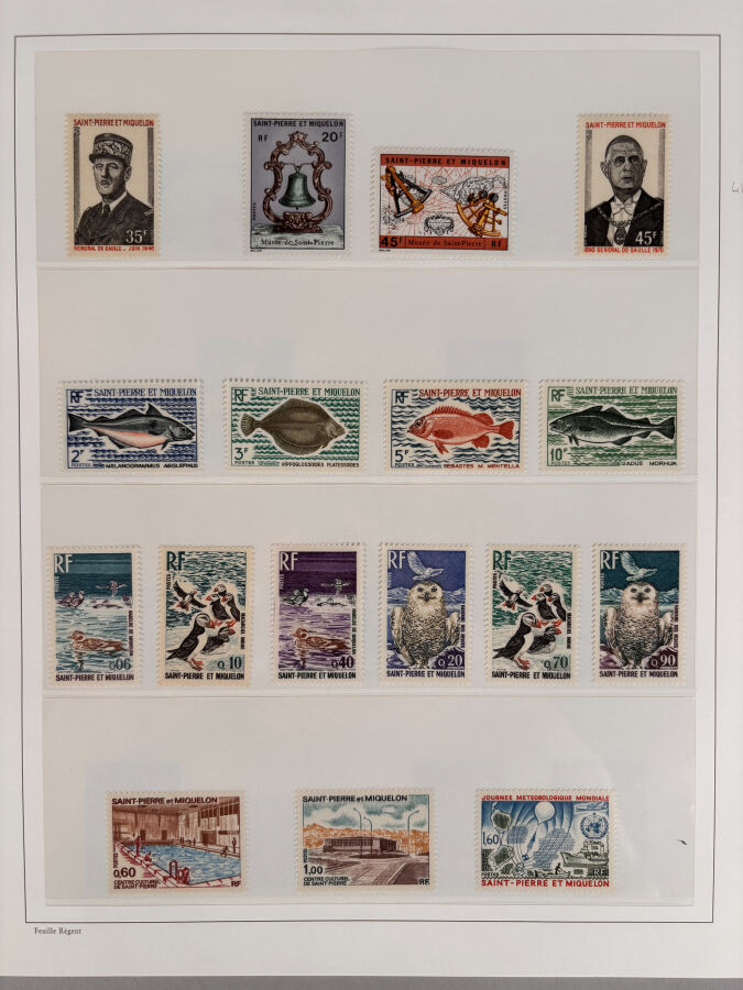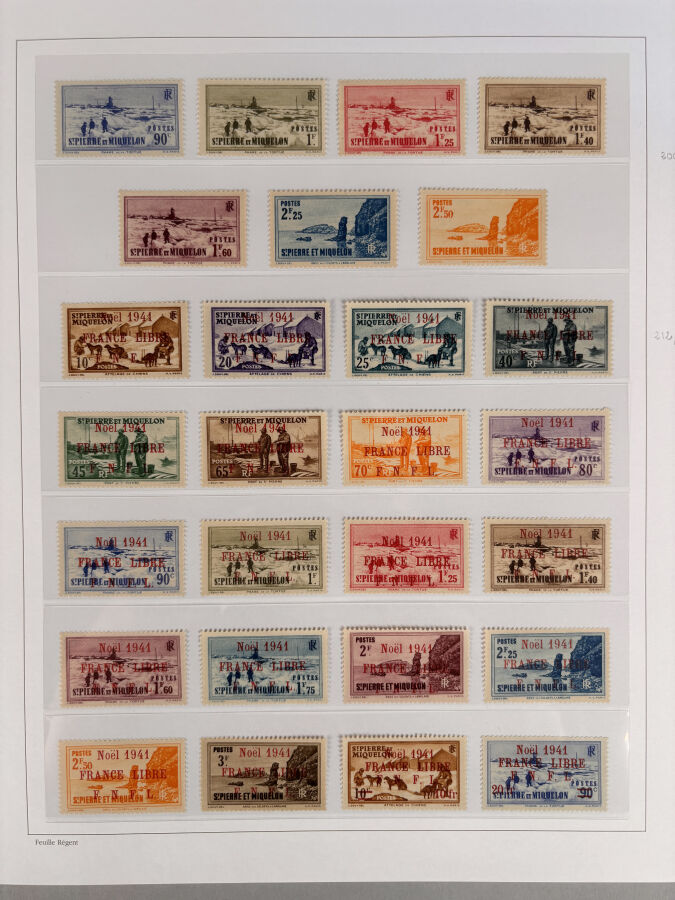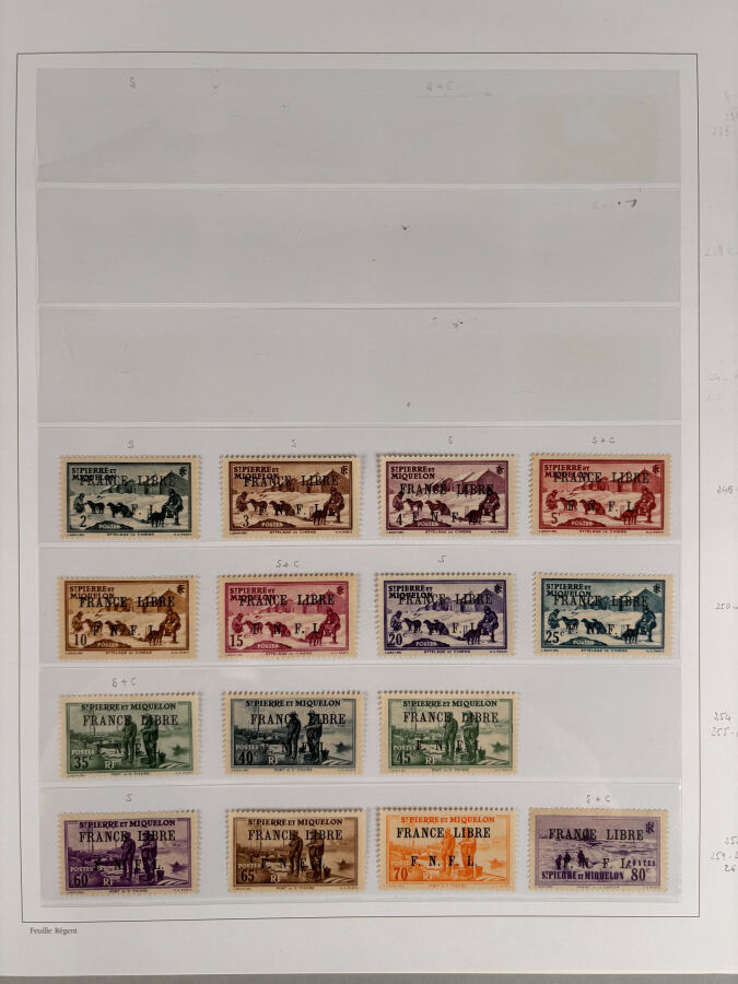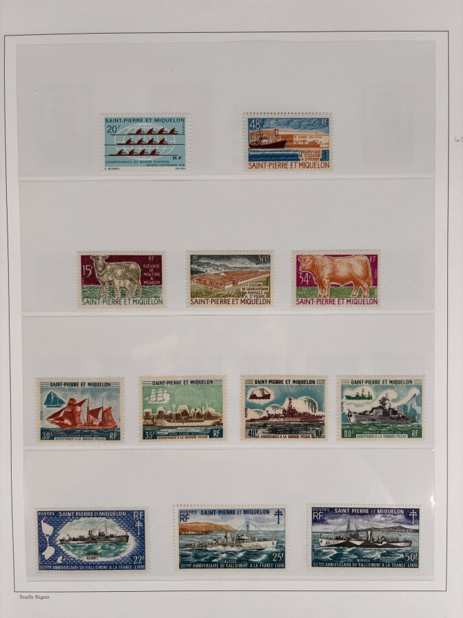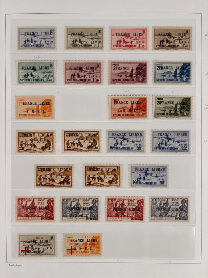 SAINT-PIERRE-ET-MIQUELON: En album YVERT, collection de TP N** ou N*, des origines à 2006, de très bonnes valeurs dont FRANCE LIBRE, quelques fac-similés, cote importante.