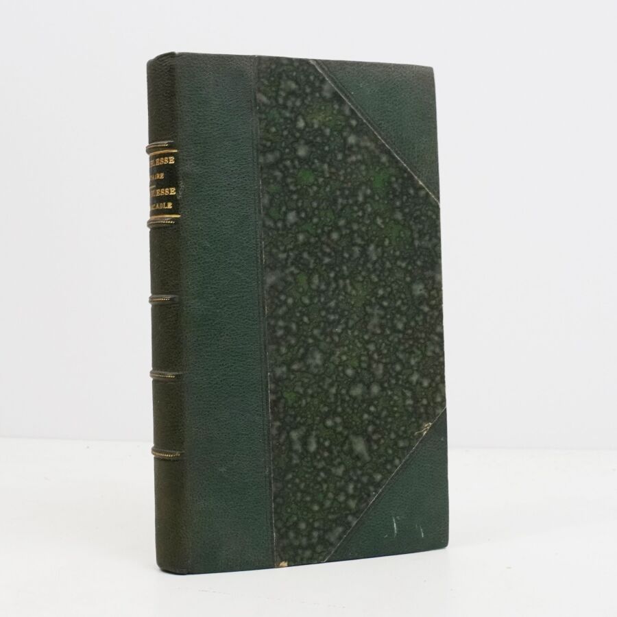 Demi-chagrin vert à coins, dos à nerfs, titre doré (rel. 19e s.). Ex-libris héraldique (de sable au chevron d'argent à la devise "Ne Furori") de la famille Fournier de Bellevue (Berry, Saint-Domingue, Bretagne).