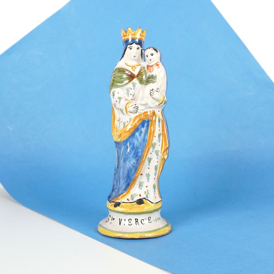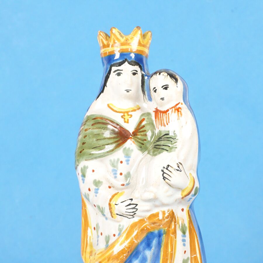 Sainte-Vierge, sujet en faïence émaillée polychrome, 19ème siècle, H. 23.5 cm.