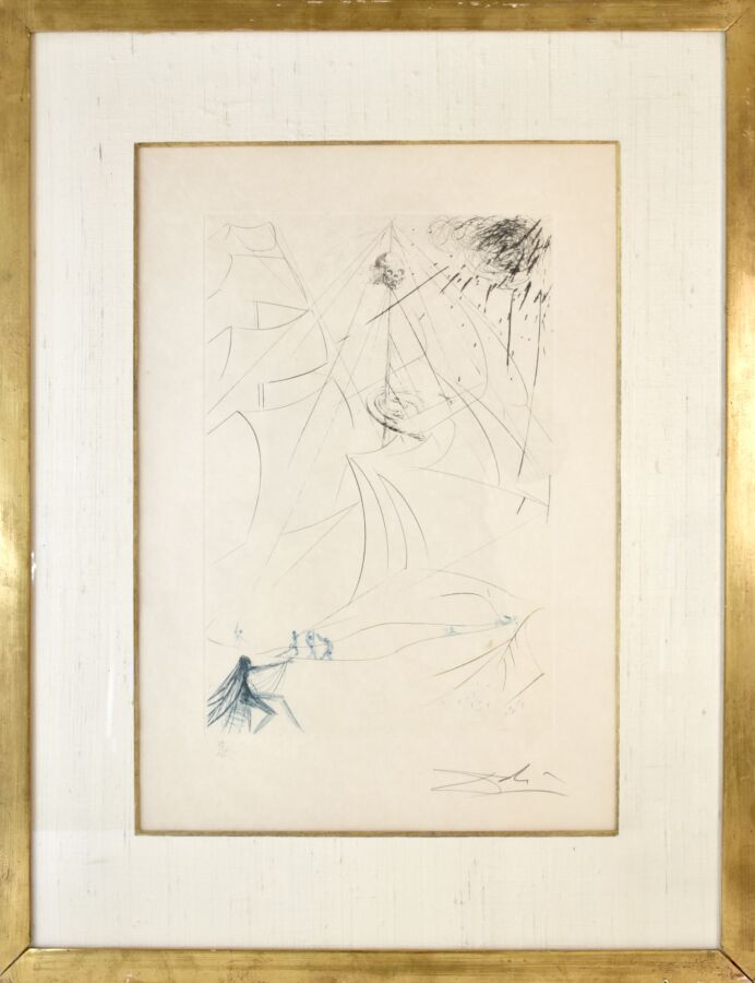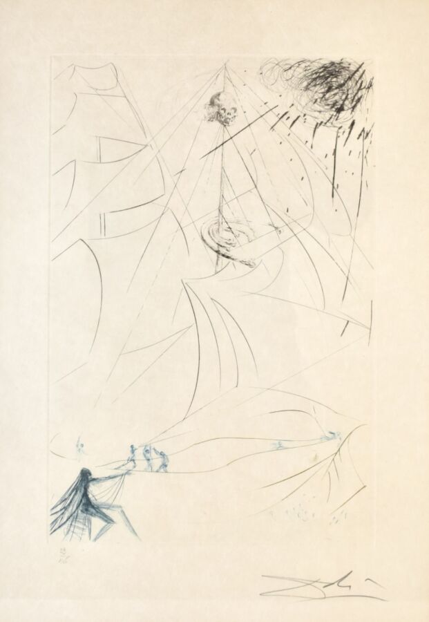 Salvador DALI (1904-1989)," Le vaisseau fantôme", gravure à la pointe sèche sur papier japon, signée en bas à droite au crayon, numérotée 29/145, 40 x 26.5 cm.
