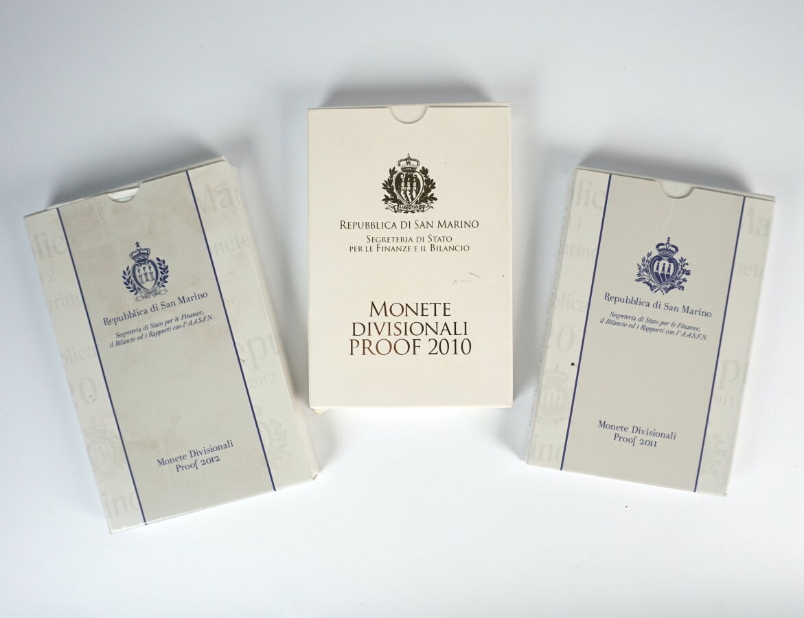 San Marin : 3 sets de monnaie divisionnaire, 2010, 2011 et 2012.