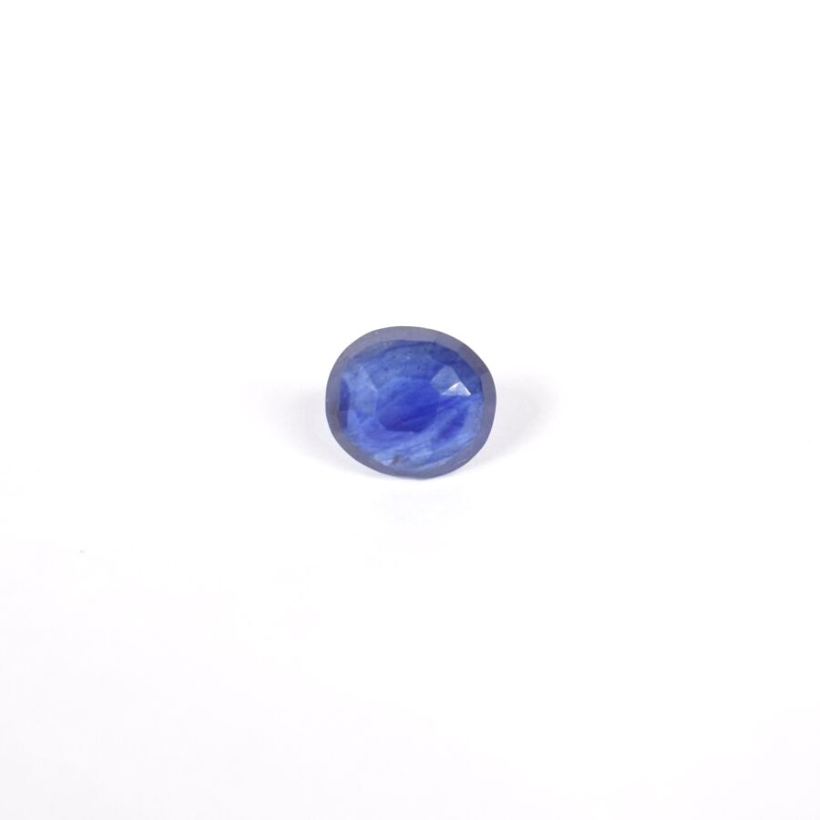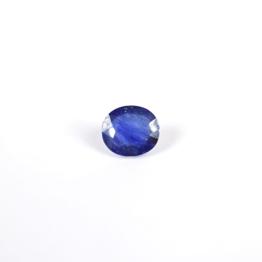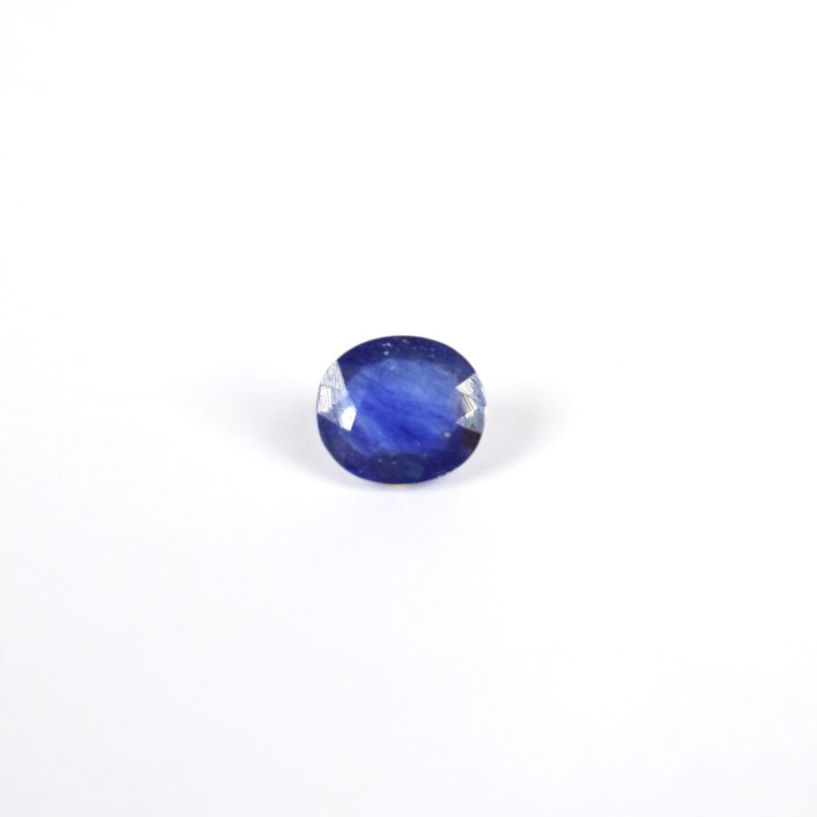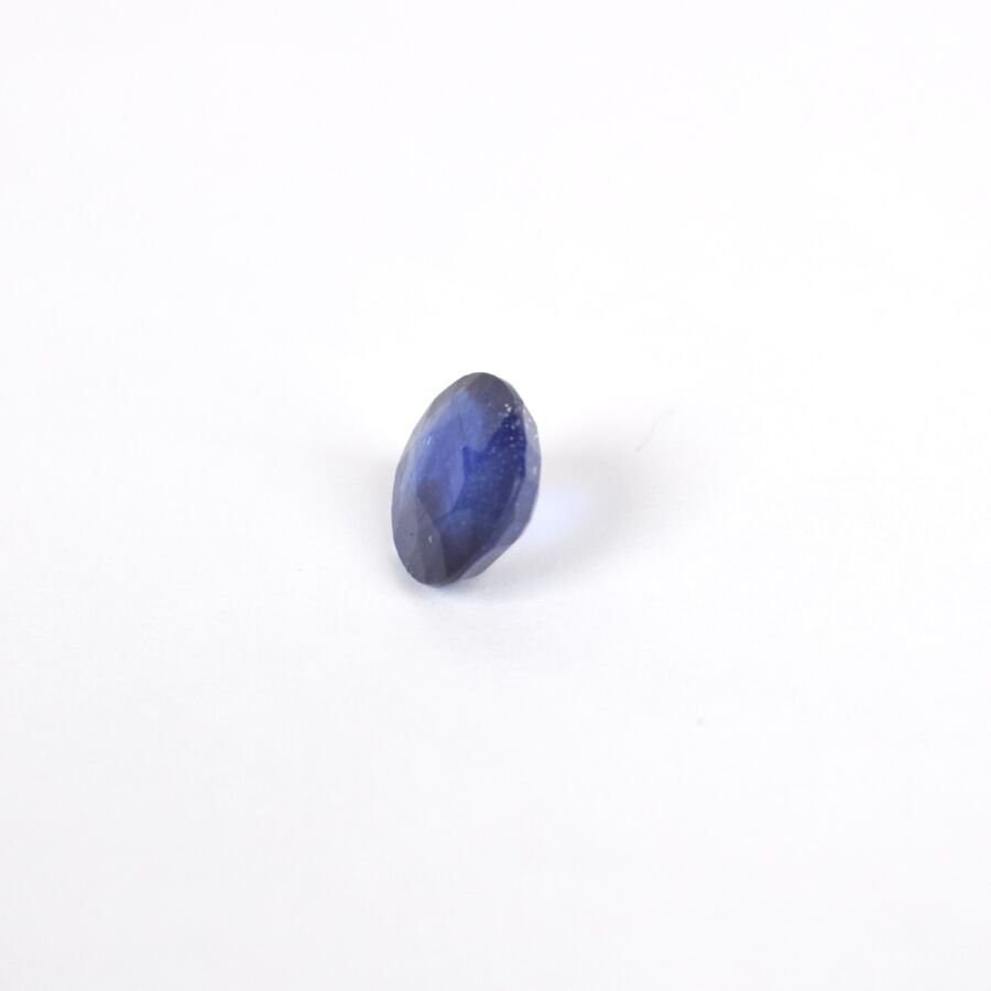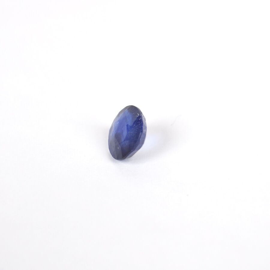 Saphir sur papier de couleur bleue, taille ovale mixte, calibrant 5.7 cts environ (D. 1.1 x 1 cm), Poids brut : 1.2 g environ.