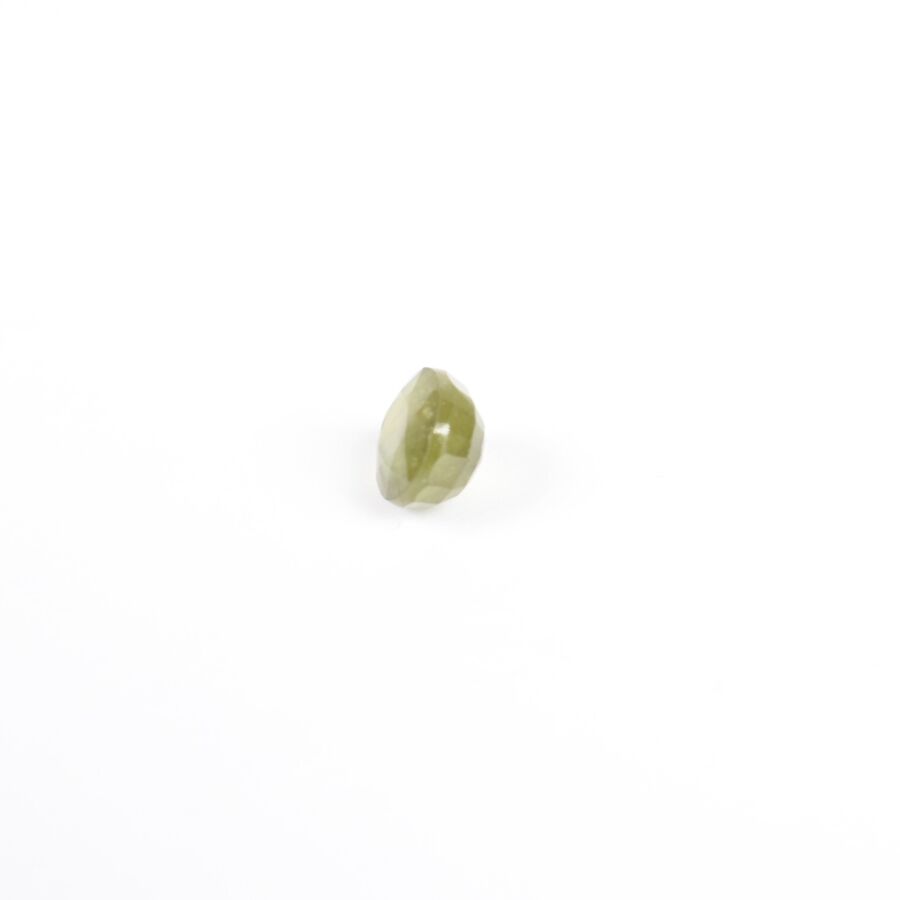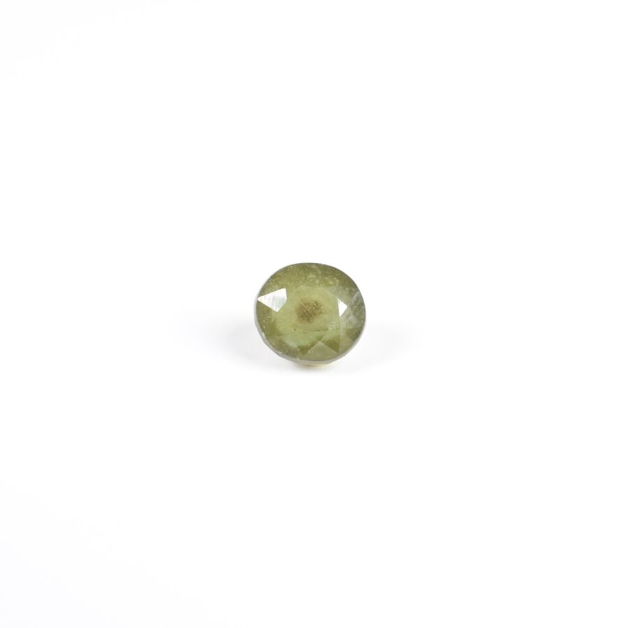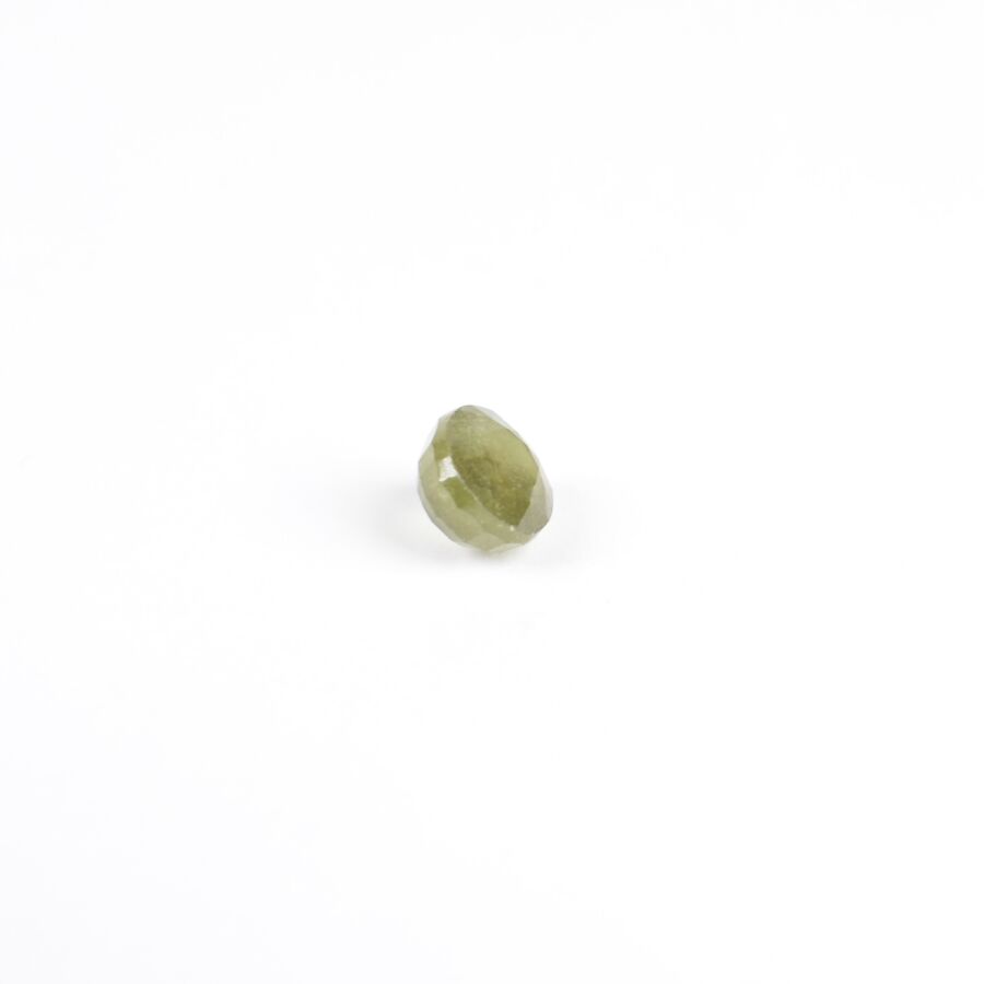 Saphir vert facetté sur papier, de taille ovale mixte calibrant 5.30 cts environ (D. 0.95 x 0.85 cm), Poids brut : 1 g environ (inclusions et égrisures).