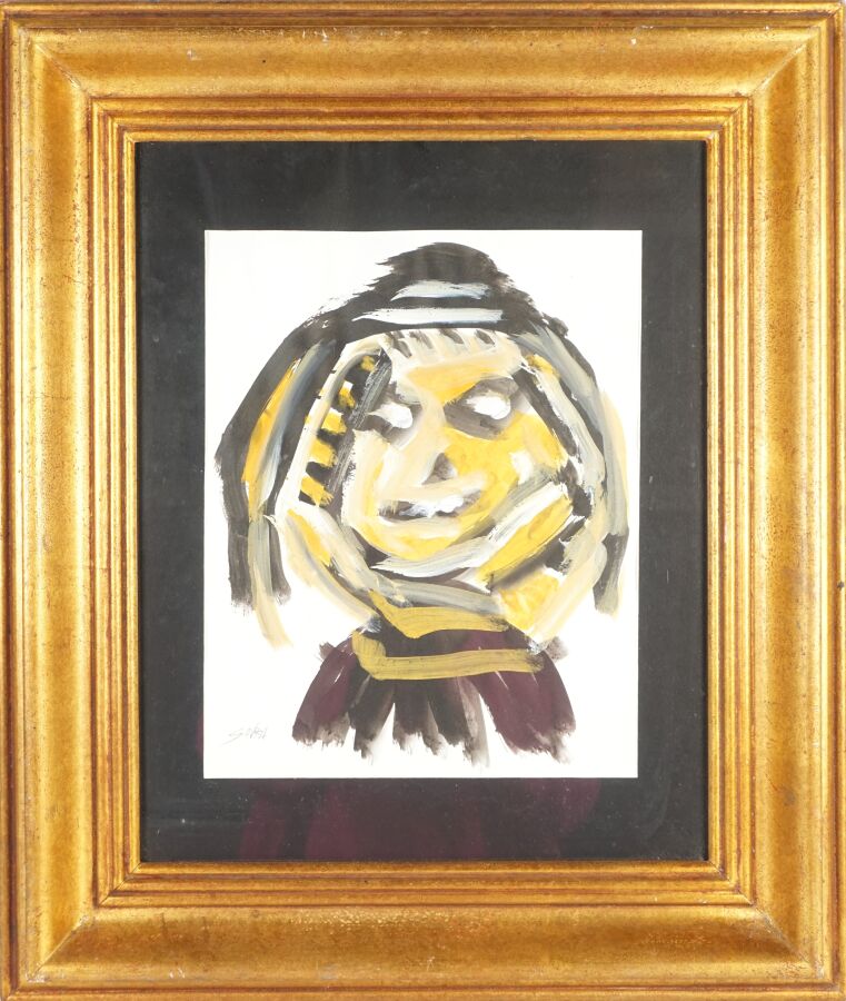 SAURA (XXe), "Patient', gouache sur papier signée en bas à gauche, 28.6 x 23 cm (partie haute du dessin gondolée, traces d'humidité au dos).