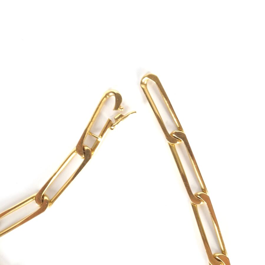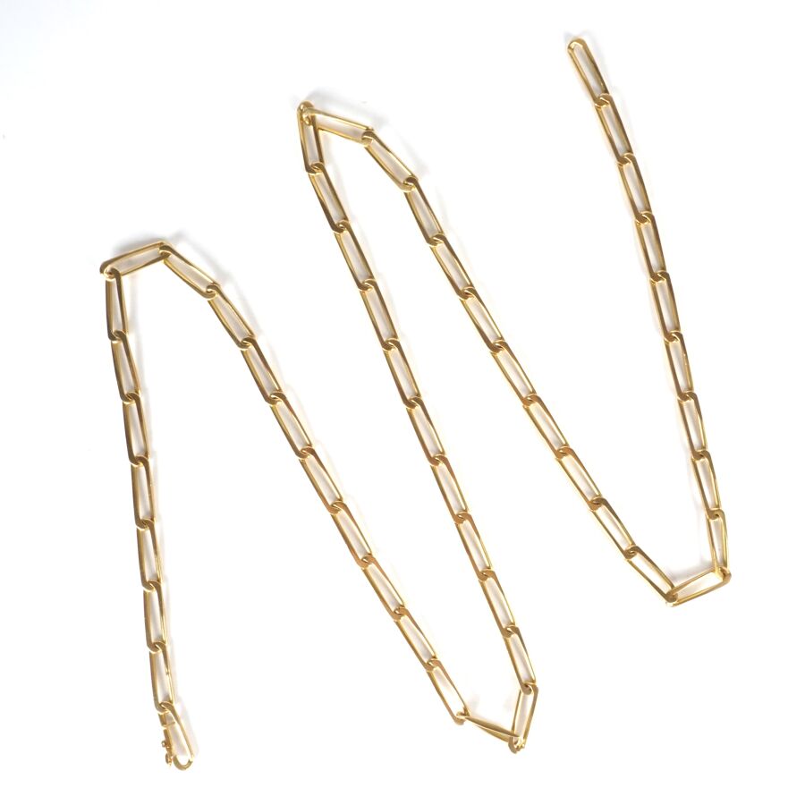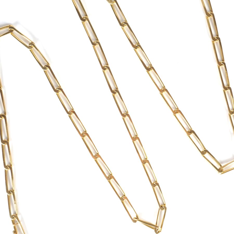 Sautoir en or jaune 18K (750/oo), maille cheval, fermoir à crochet avec 8 de sécurité, L. 80.5 cm. Poids brut : 47.7 g environ.