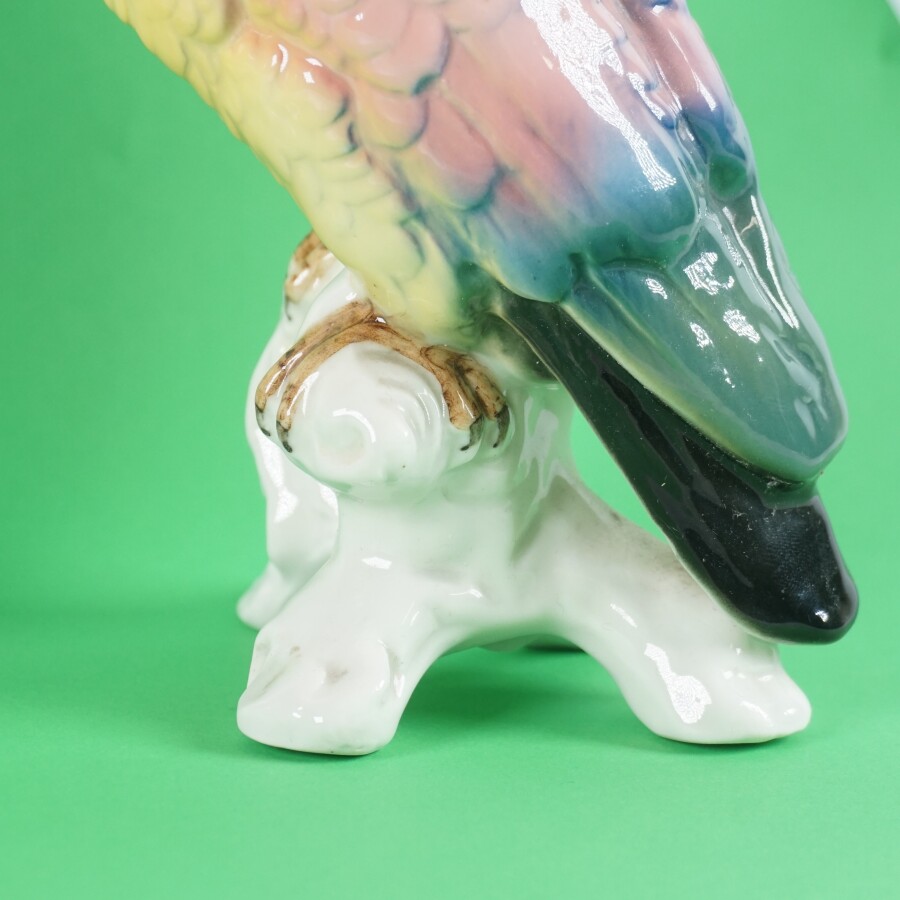 SAXE : Cacatoès, deux sujets en porcelaine émaillée polychrome, marqué dessous, H. 23.5 cm (éclat à l'un).