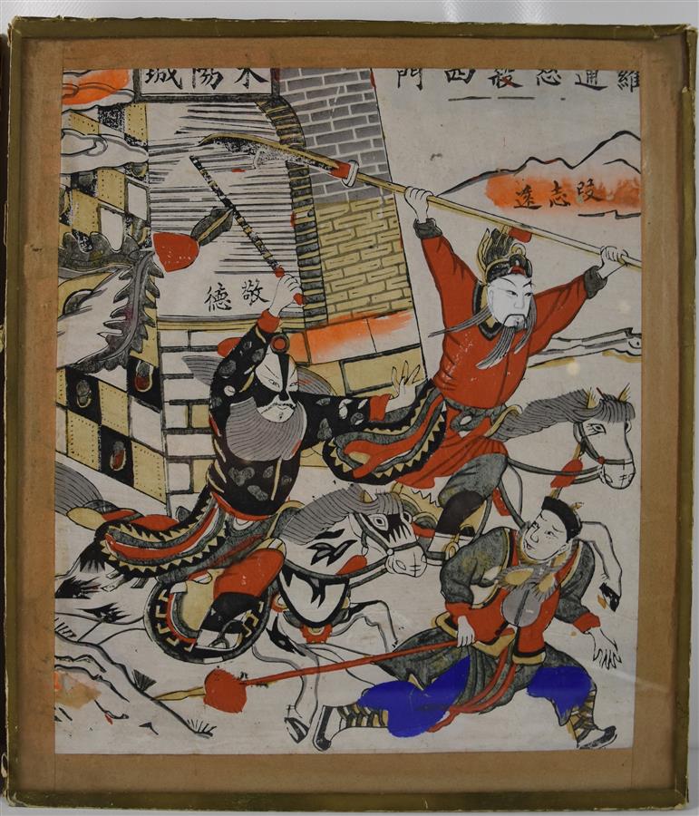 "Scènes de batailles équestres", deux gouaches sur papier, formant un pendant, Chine, fin 19e siècle, 28 x 24 cm