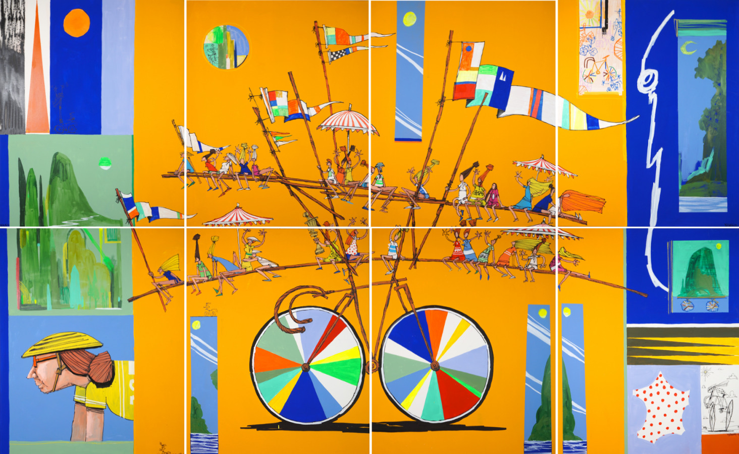 *Dans le cadre du passage du Tour de France Féminin à Vannes, le 26 juillet, Semor a réalisé en direct une fresque monumentale sur la rive droite du port. Véritable hommage au cyclisme et aux femmes, cette oeuvre éphémère, divisée en huit tableaux sur une structure en bois, invite le public à découvrir son processus créatif.