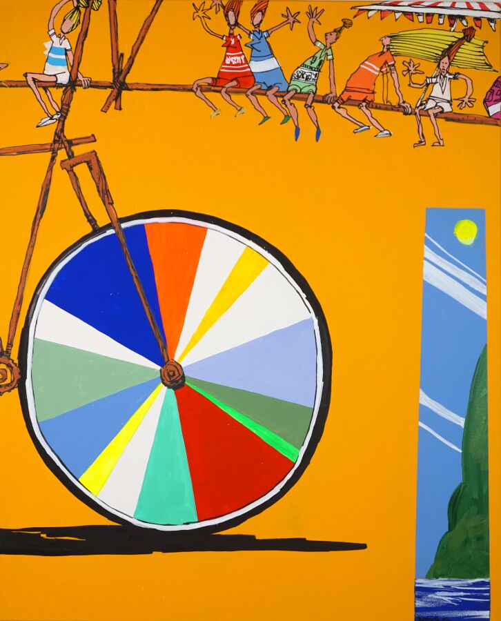 SEMOR (XX-XXIe), "La fresque du Tour, panneau 6" 2025, acrylique et aérosol sur toile signée et datée en bas à droite, contresignée et datée au dos, 81 x 100 cm.