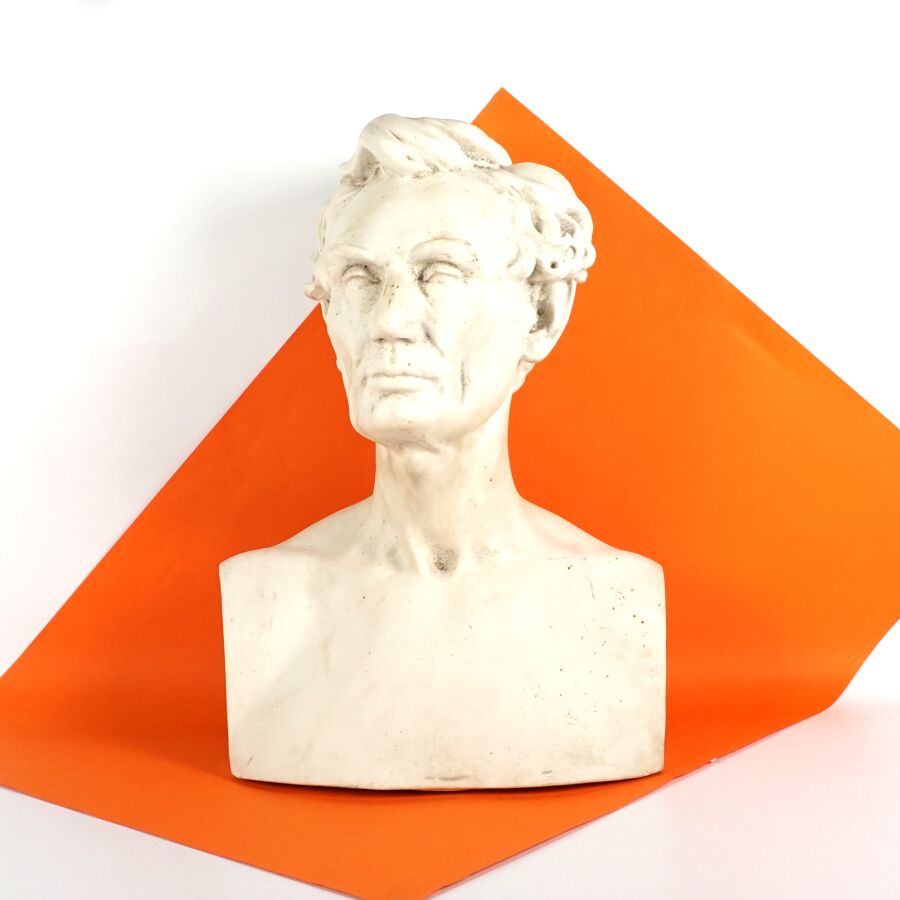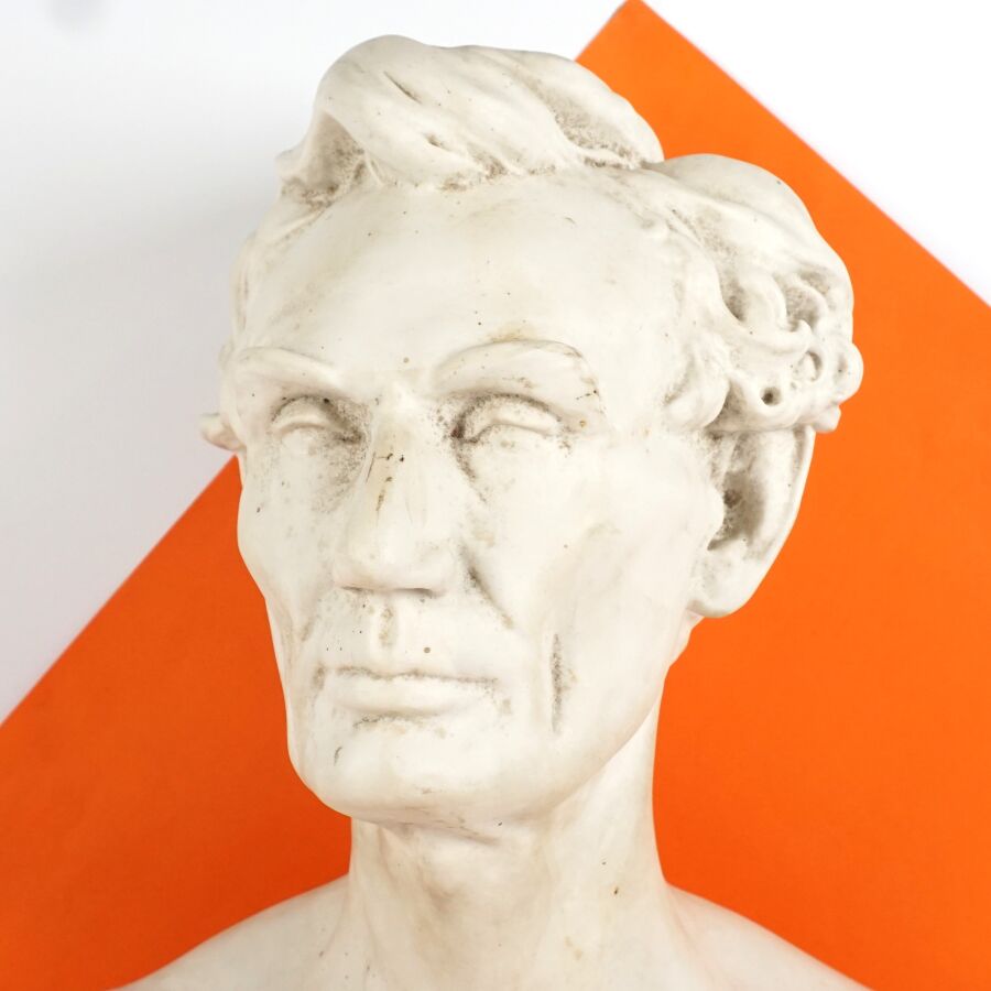 SEVRES : "Abraham Lincoln", buste en biscuit, marque incisée "L.S" et cachet en creux S - 1921 - DN dans un rectangle, d'après Leonard VOLK (1828-1895), présenté sans son socle, H. 42 cm (traces, petites égrenures).