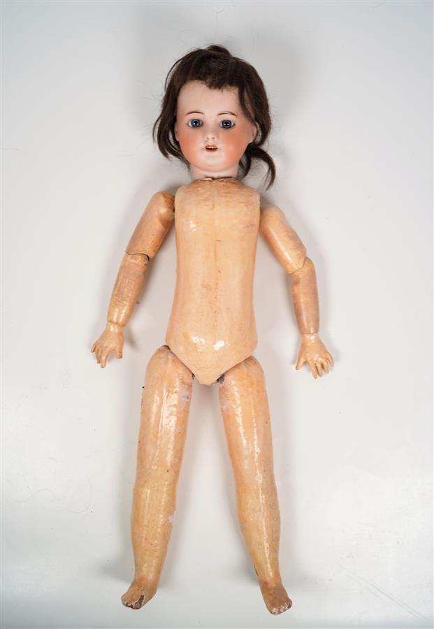 SFBJ : Tête moule 60 taille 6, yeux de sulfure bleus, sur un corps non d'origine, H. 59 cm (légères écaillures).