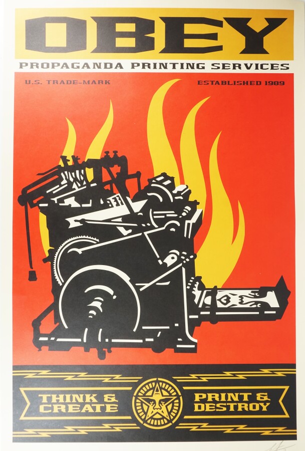 Shepard FAIREY dit OBEY (1970), "Propaganda Printing Services" 2020, sérigraphie couleurs sur papier, signée et datée en bas à droite, 91 x 61 cm.