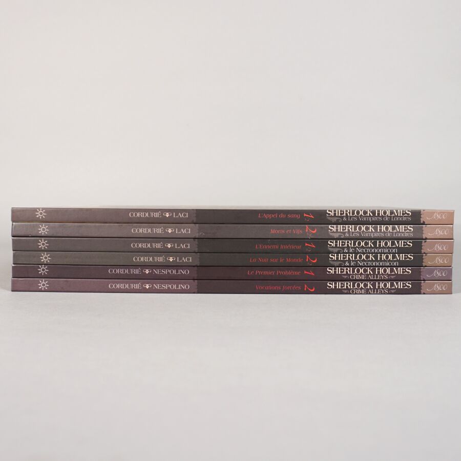 SHERLOCK HOLMES, éd. SOLEIL, collection 1800 : Ensemble de 6 albums comprenant "Les vampires de Londres" (tomes 1 et 2), "Le necronomicons" (tomes 1 et 2) et "Crimes Alleys" (tomes 1 et 2).